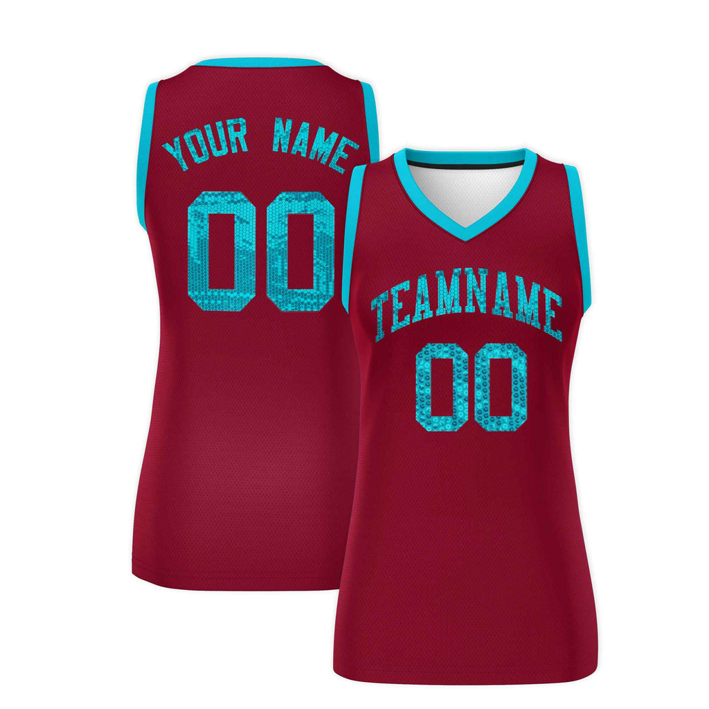 Custom Crimson Sky Blue Women Basketball Jersey Sequined Dress
