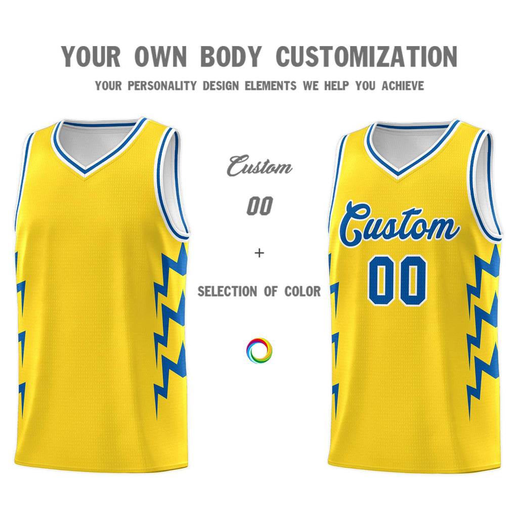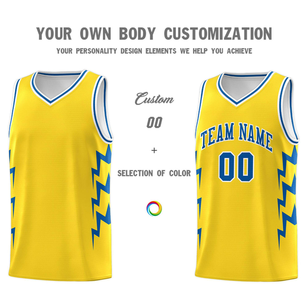 Custom Gold Side Lightning Pattern Sports Uniform Basketball Jersey
