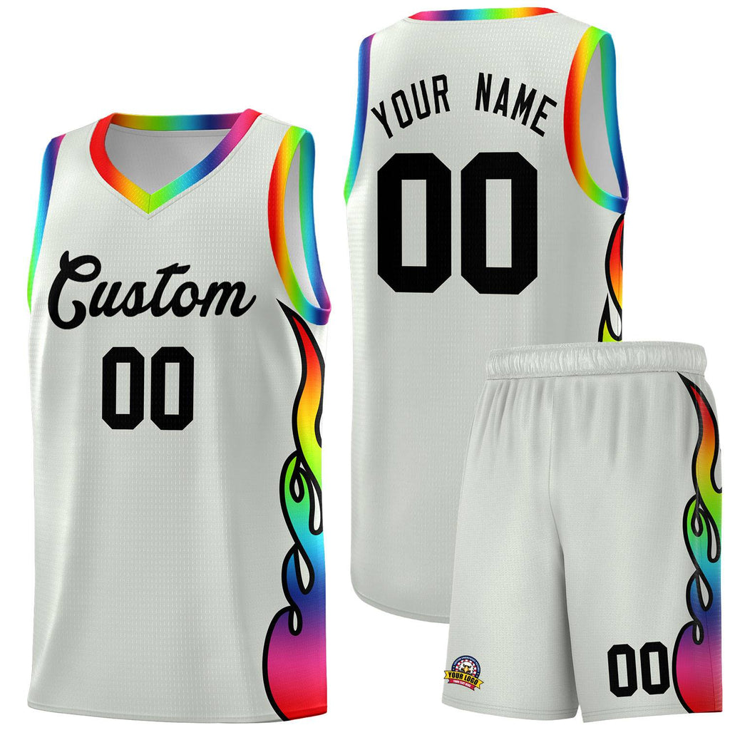 Custom Gray Side Flame Pattern Fashion Sports Uniform Basketball Jersey