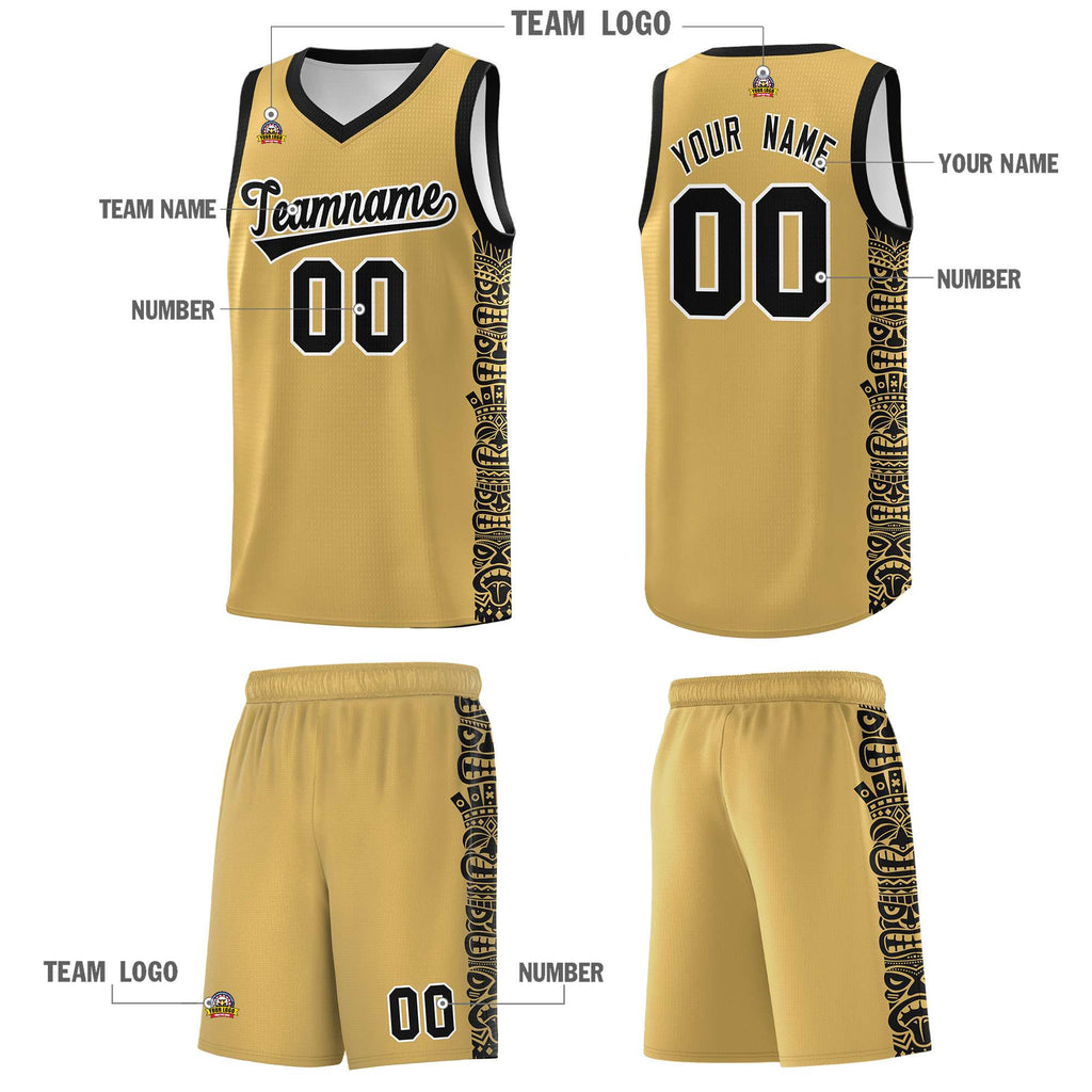 Custom Khaki Black Personalized Indians Pattern Sets Sports Uniform Basketball Jersey