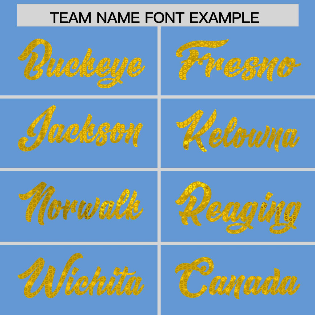 Custom Light Blue Gold Women Basketball Jersey Sequined Dress