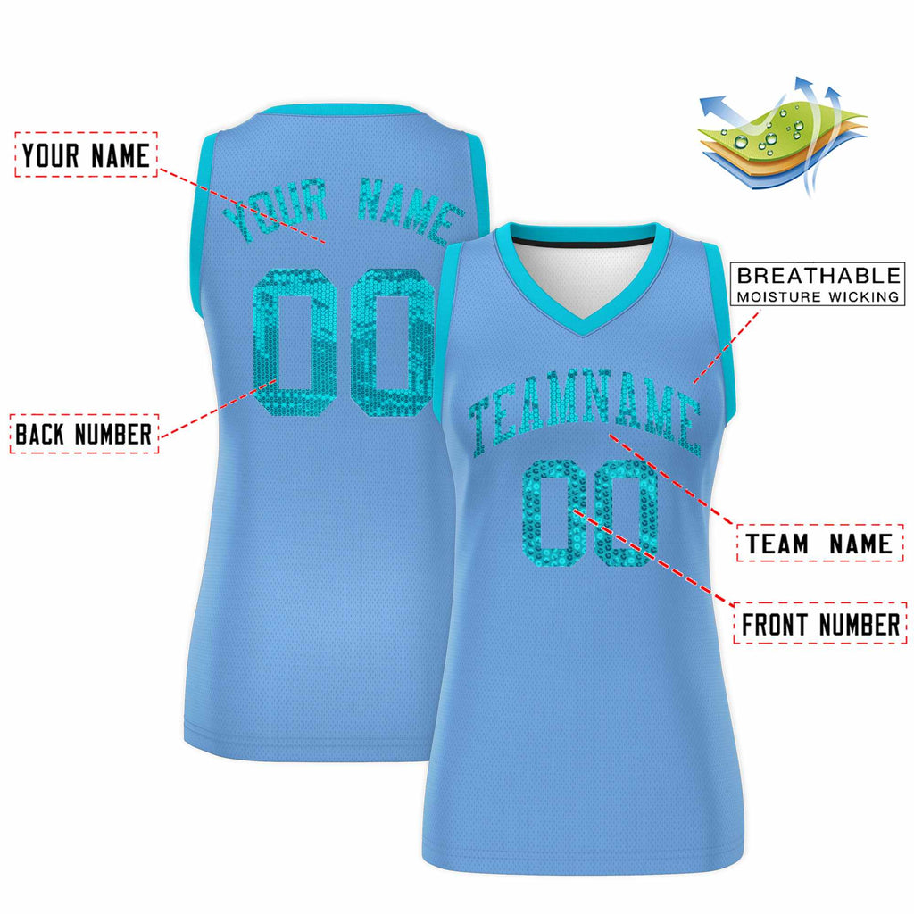 Custom Light Blue Sky Blue Women Basketball Jersey Sequined Dress