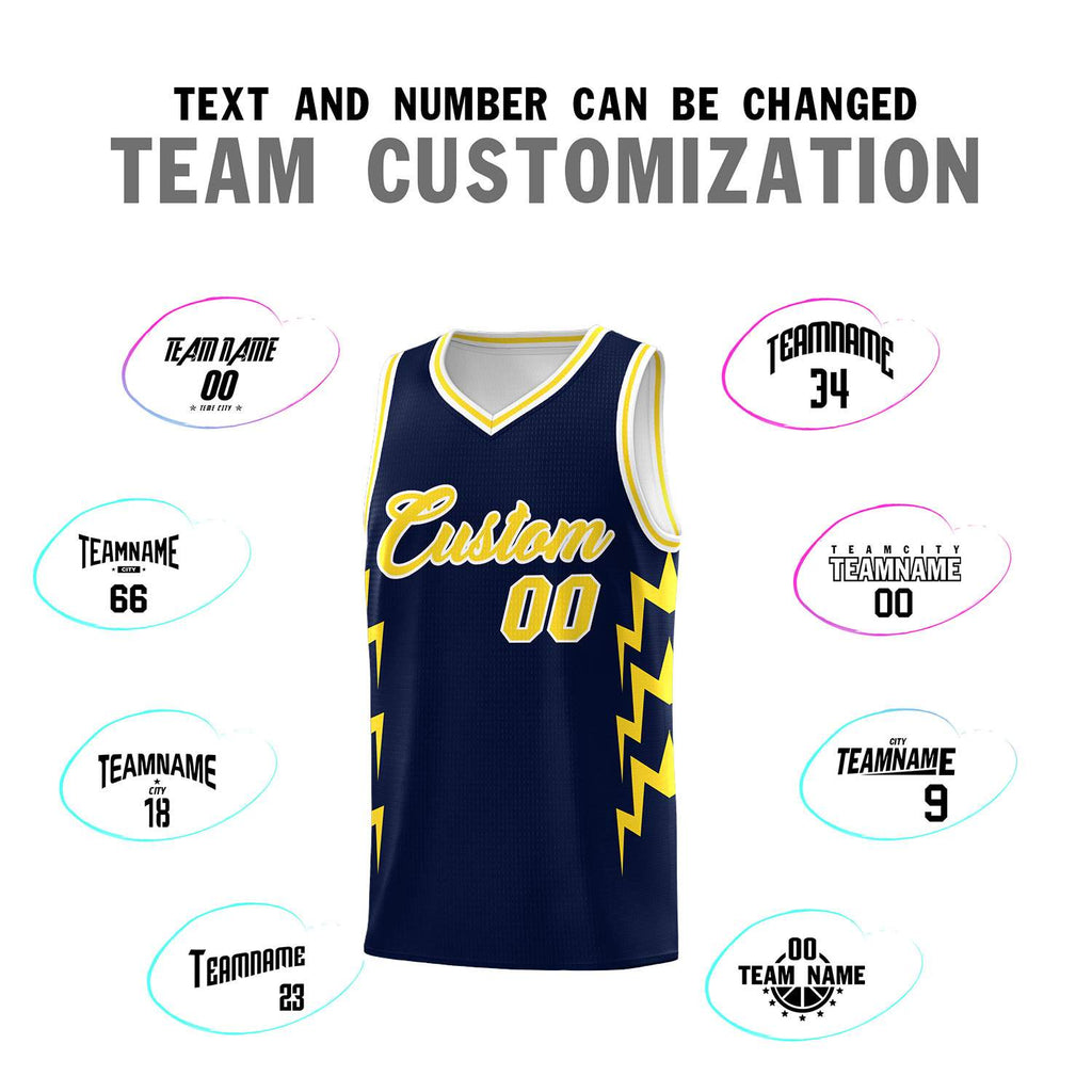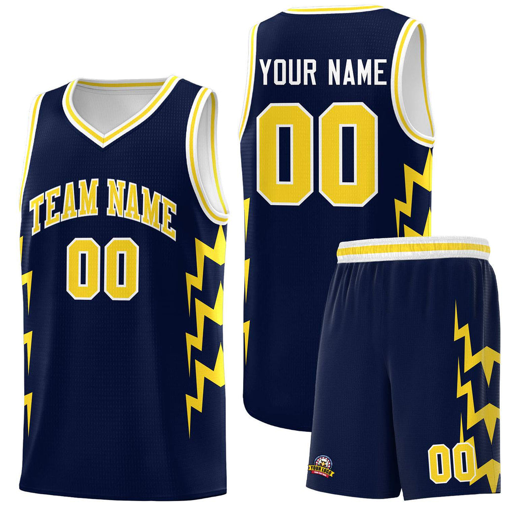 Custom Navy Side Lightning Pattern Sports Uniform Basketball Jersey