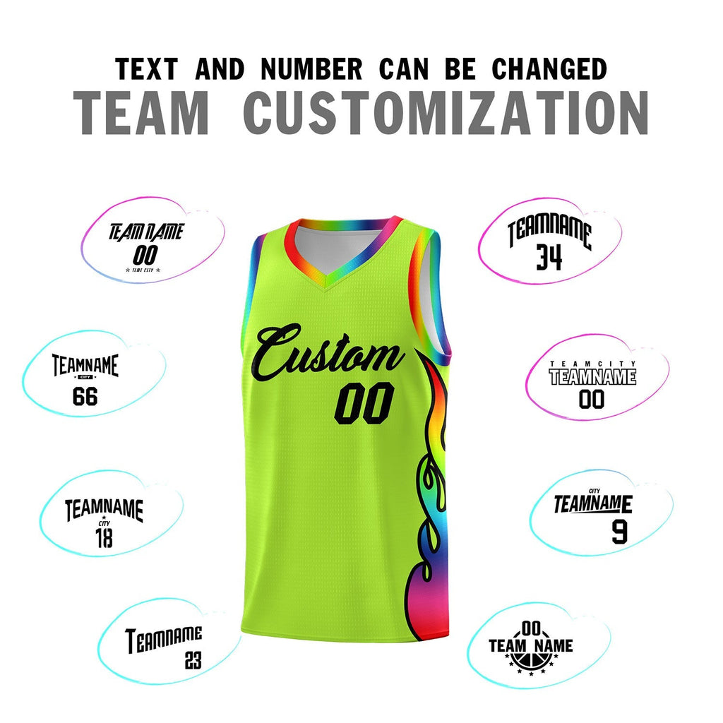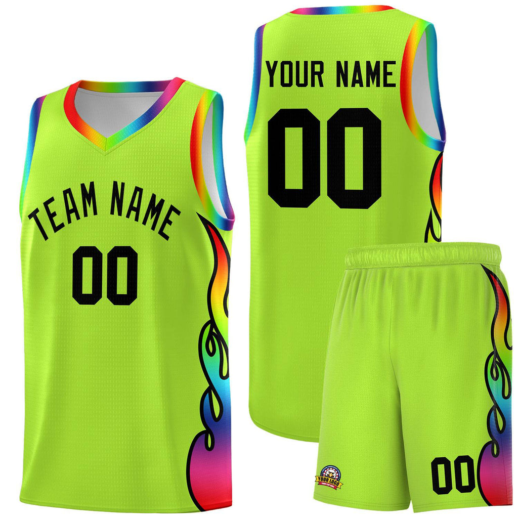 Custom Neon Green Side Flame Pattern Fashion Sports Uniform Basketball Jersey