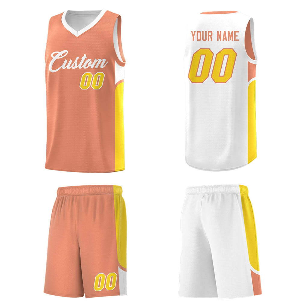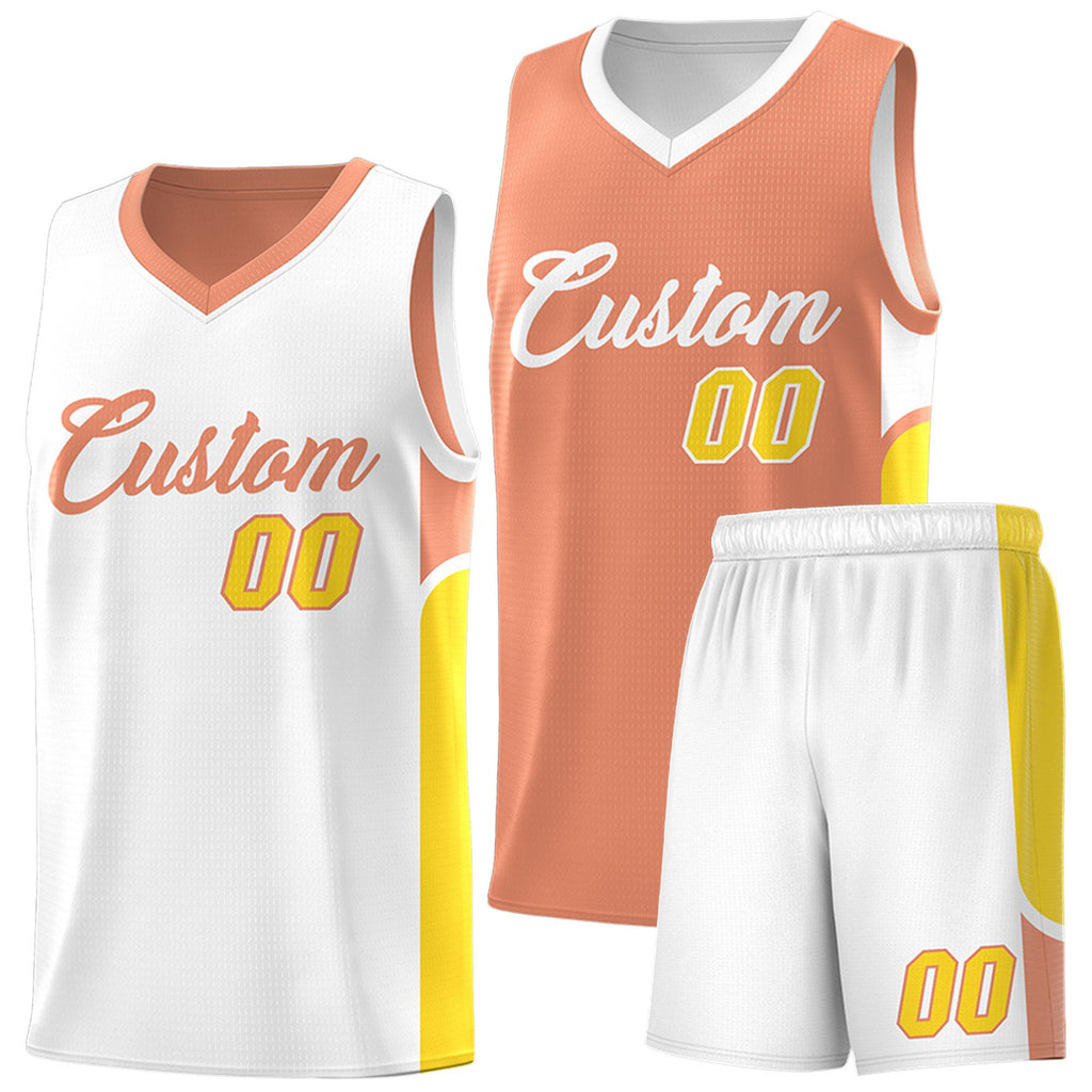 Custom Orange White Side U-shaped Patttern Double Side Sports Uniform Basketball Jersey