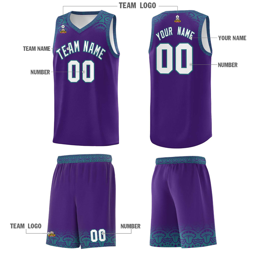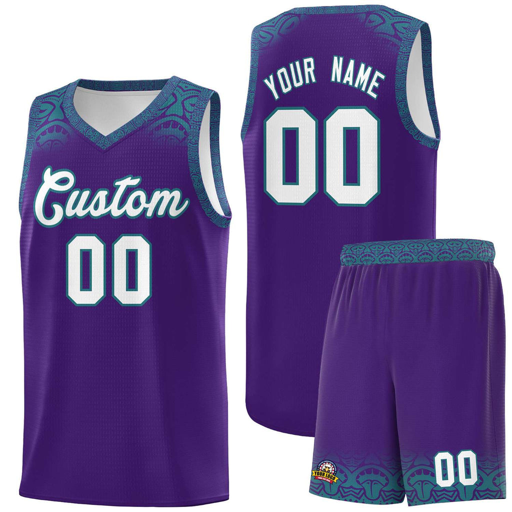 Custom Purple Aqua Personalized Indians Print Sets Sports Uniform Basketball Jersey