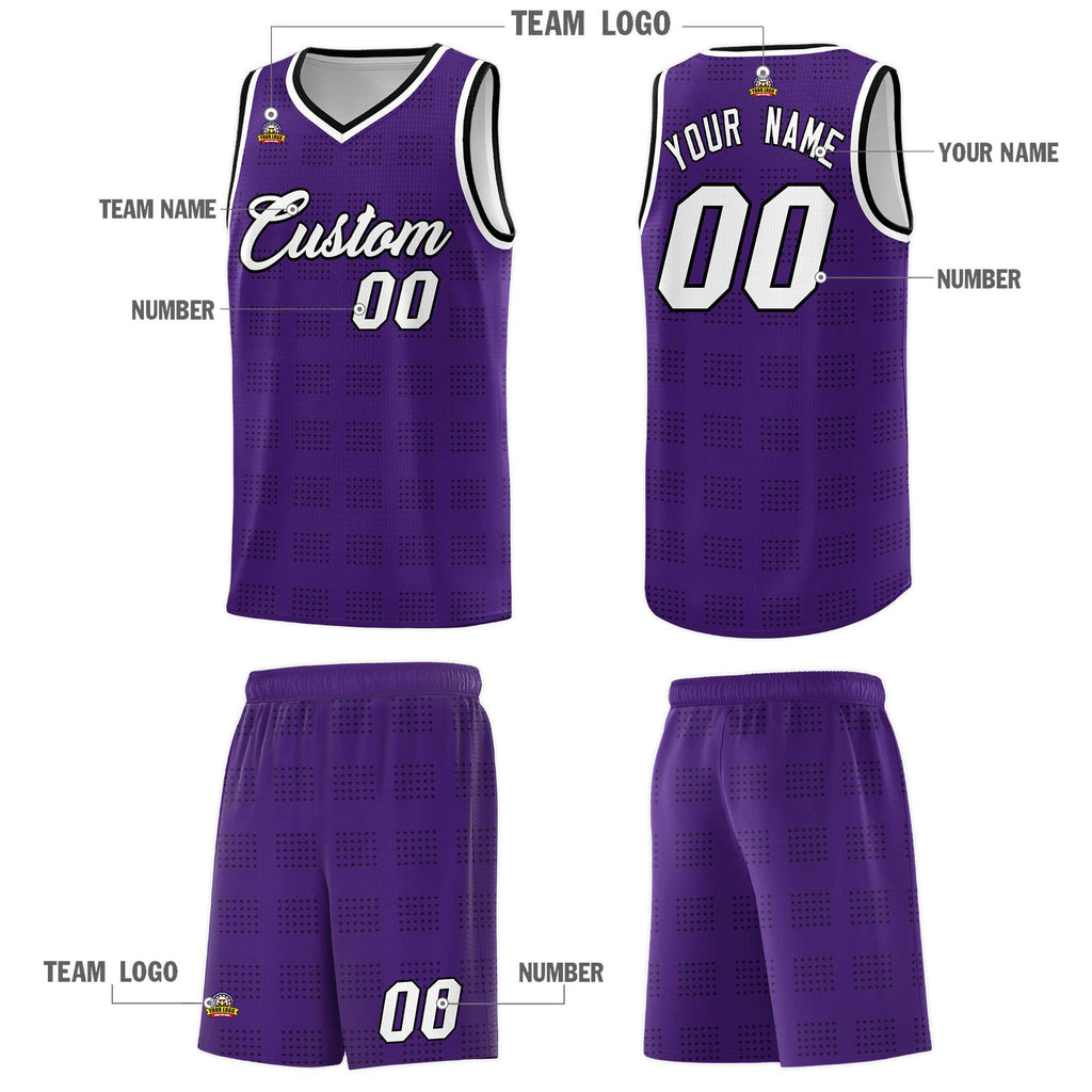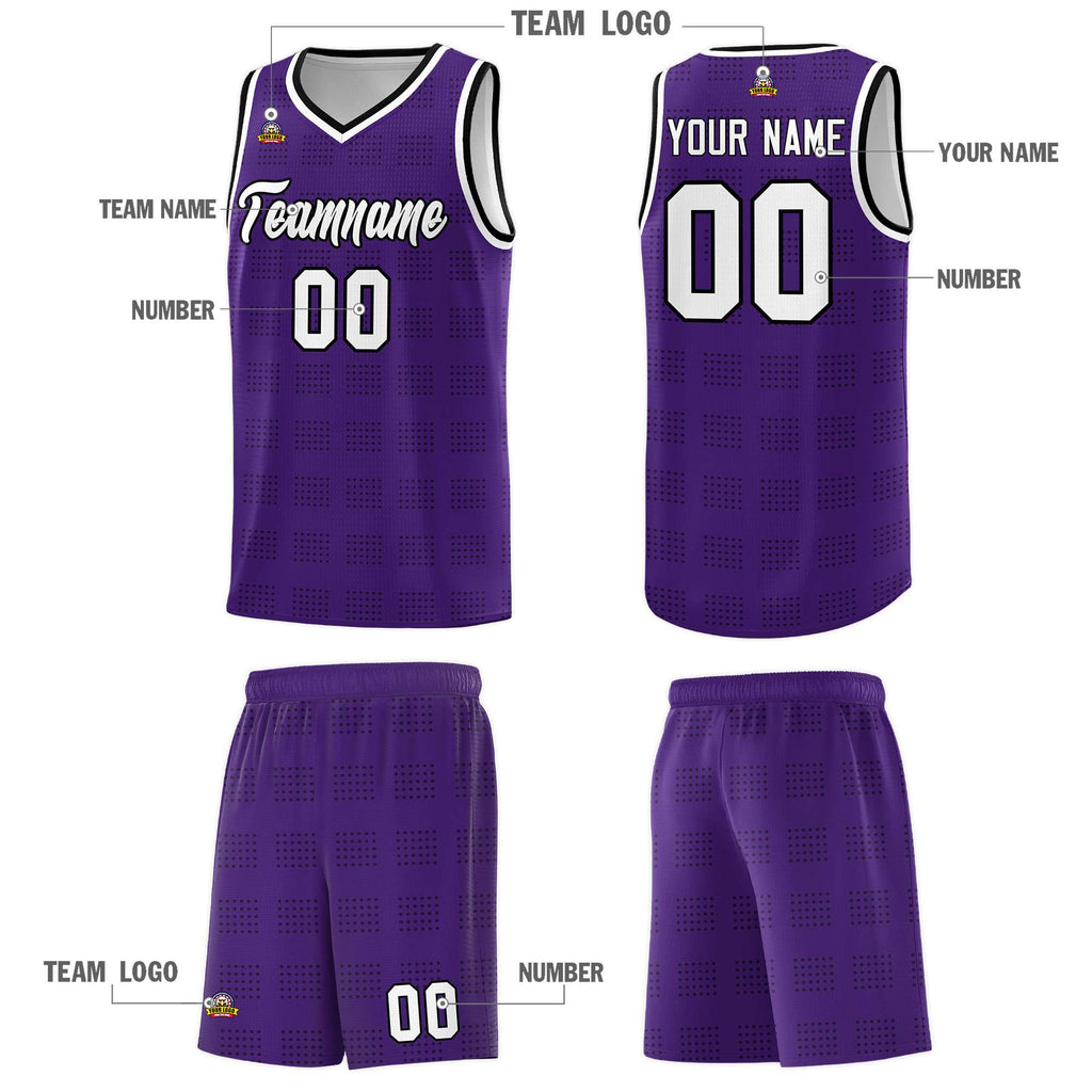 Custom Purple Black Trailblazer Dot Pattern Sports Uniform Basketball Jersey