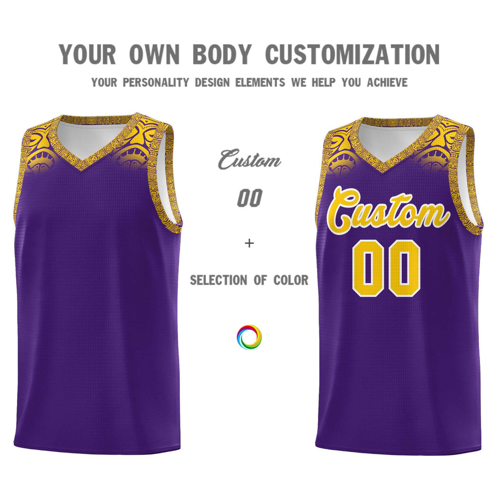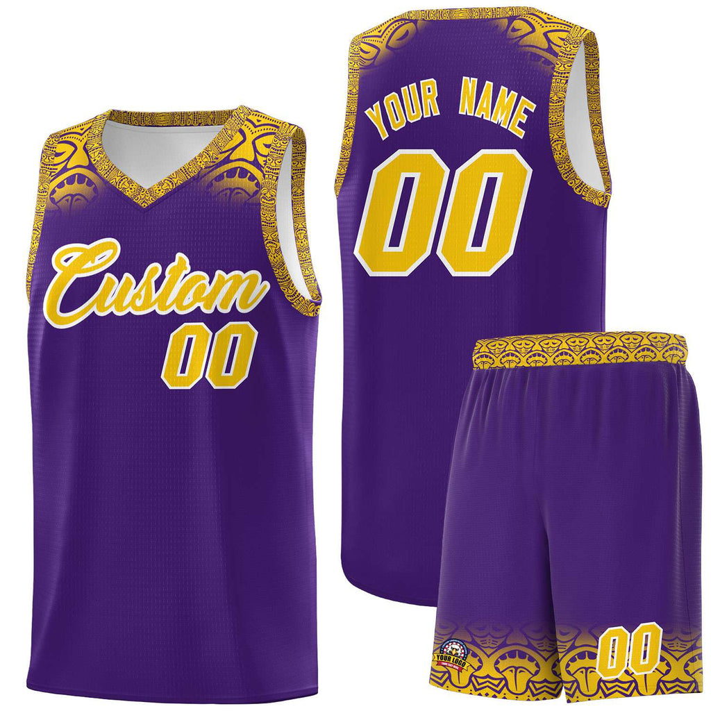 Custom Purple Gold Personalized Indians Print Sets Sports Uniform Basketball Jersey
