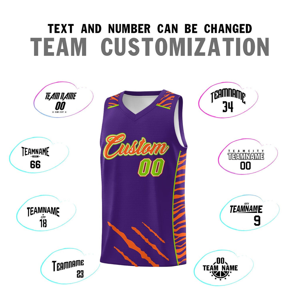 Custom Purple Personalized Tiger Claw Pattern Sports Uniform Basketball Jersey