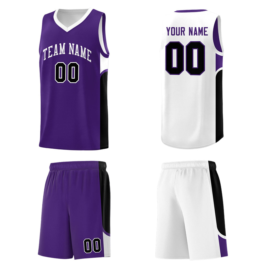 Custom Purple White Side U-shaped Patttern Double Side Sports Uniform Basketball Jersey