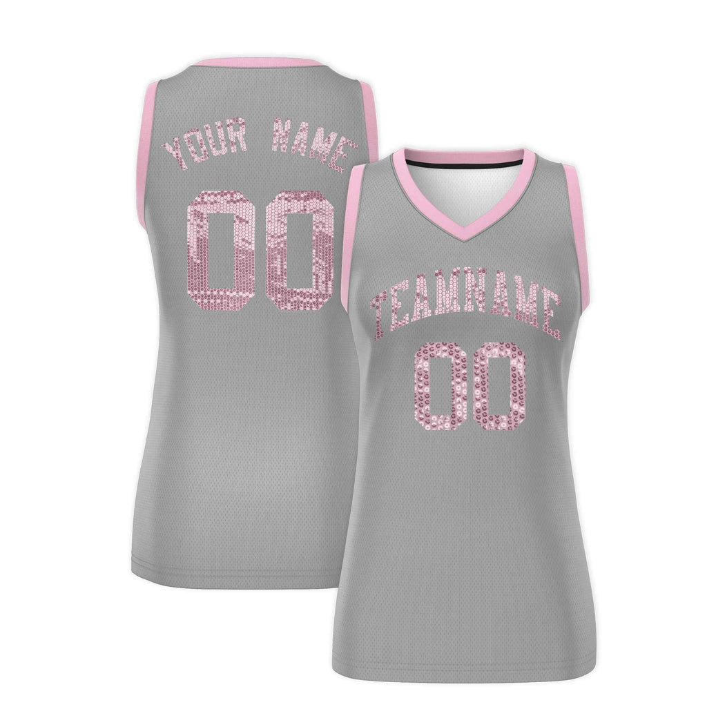 Custom Silver Light Pink Women Basketball Jersey Sequined Dress