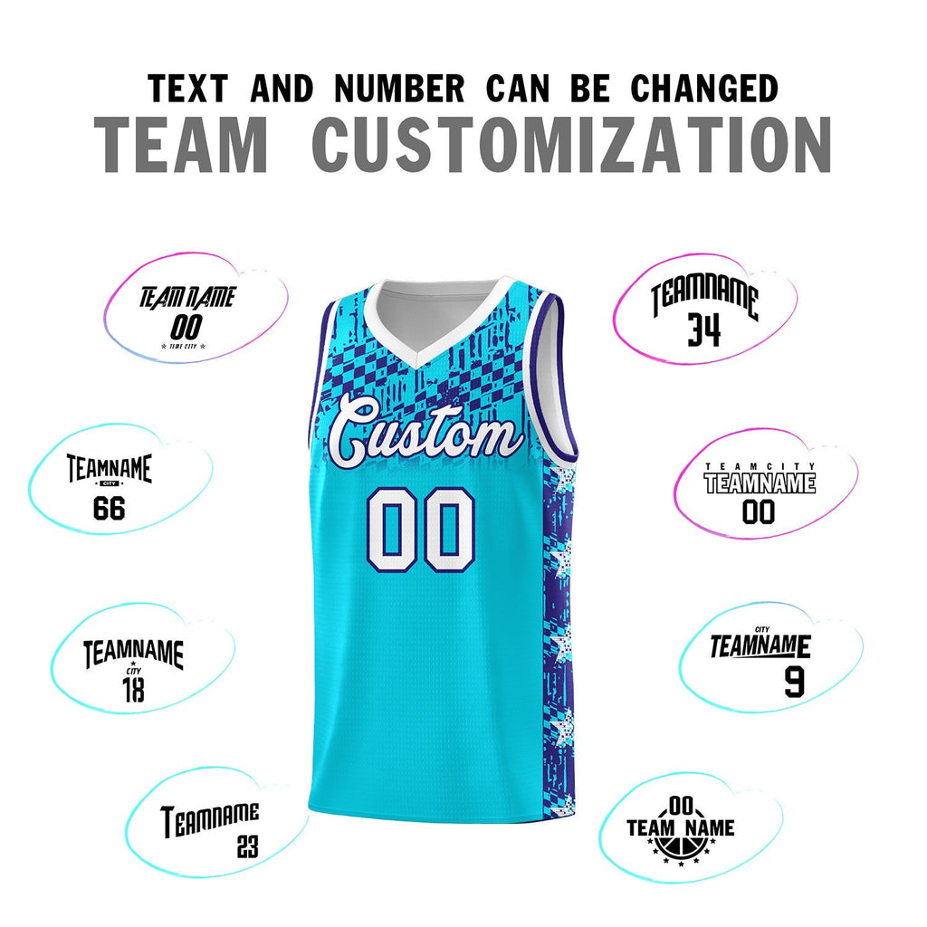 Custom Sky Blue Mosaic Stars Pattern Sports Uniform Basketball Jersey