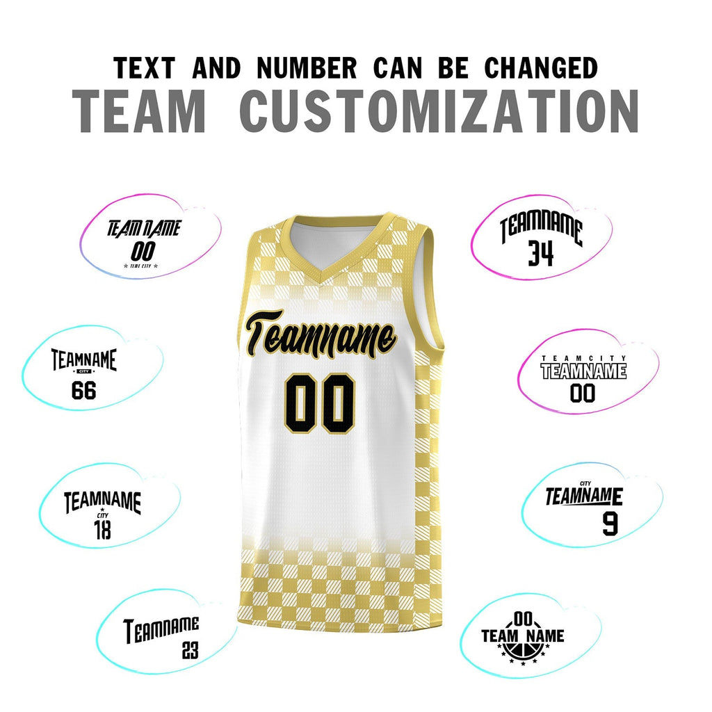 Custom White Old Gold Classic Plaid Pattern Sports Uniform Basketball Jersey