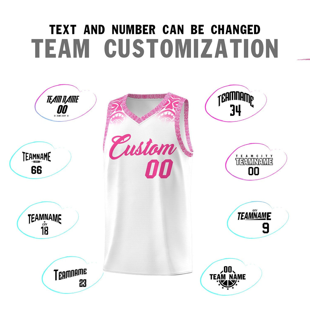 Custom White Pink Personalized Indians Print Sets Sports Uniform Basketball Jersey