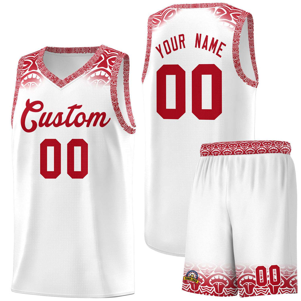 Custom White Red Personalized Indians Print Sets Sports Uniform Basketball Jersey