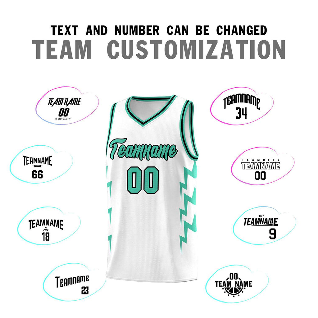 Custom White Side Lightning Pattern Sports Uniform Basketball Jersey