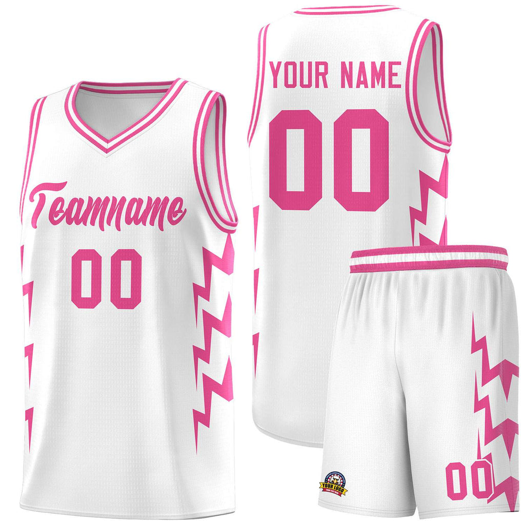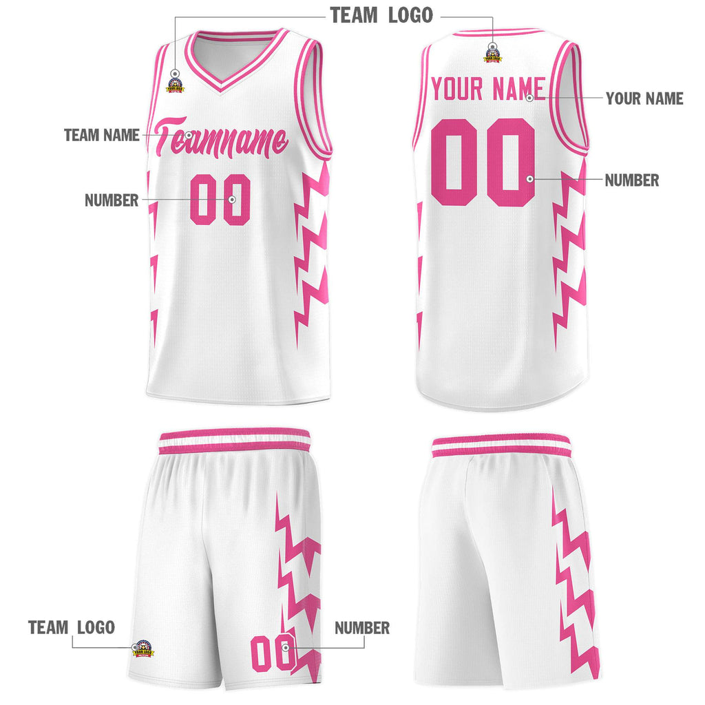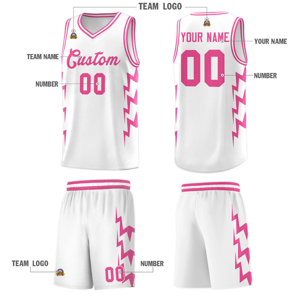 Custom White Side Lightning Pattern Sports Uniform Basketball Jersey