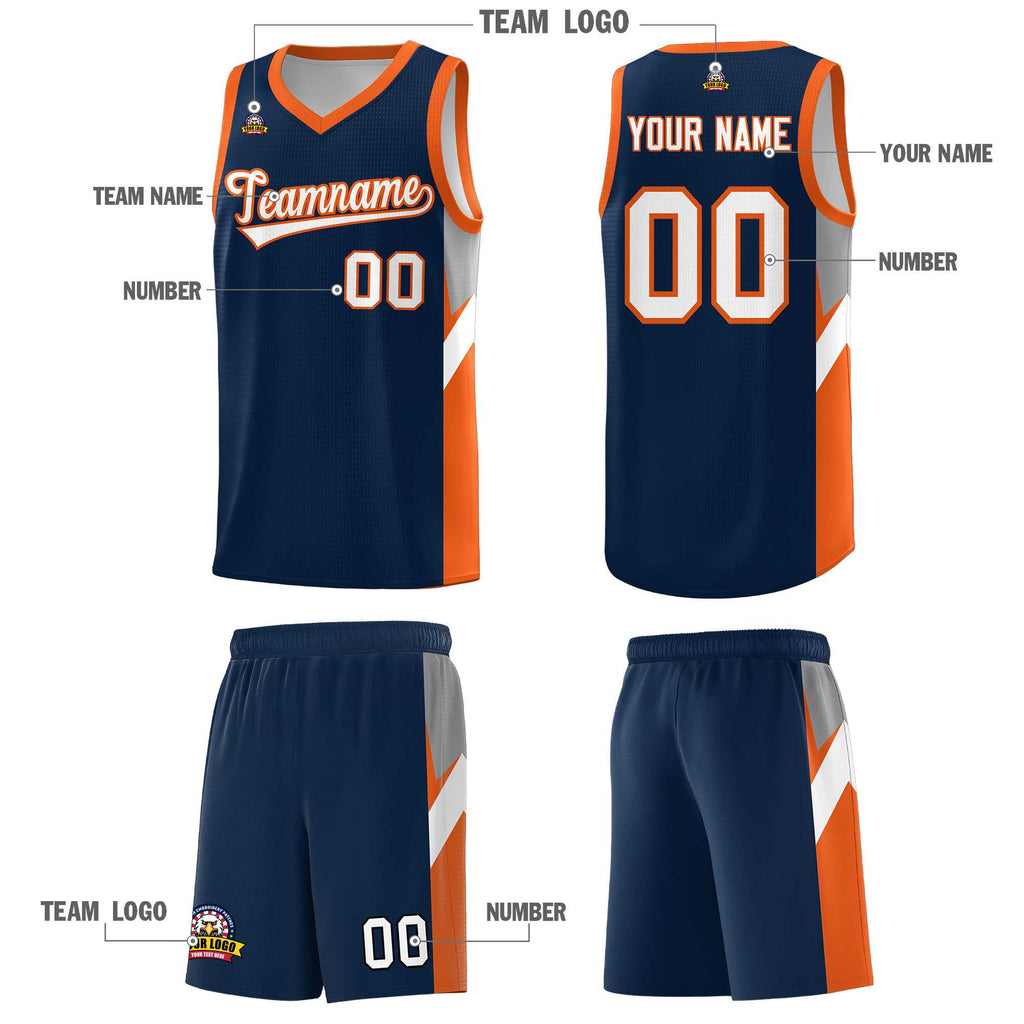 Custom Navy Orange Side Design Sets Sports Uniform Basketball Jersey