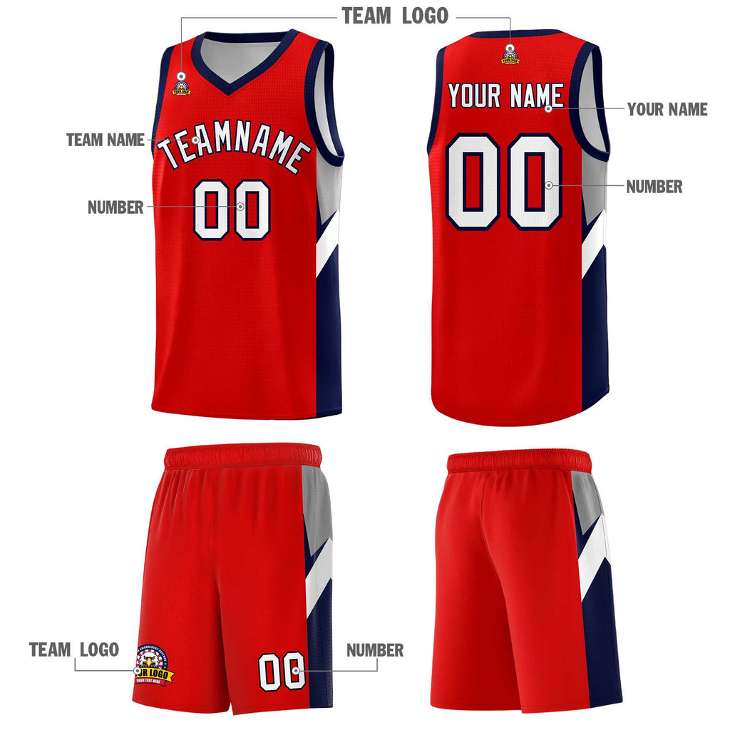 Custom Red Navy Side Design Sets Sports Uniform Basketball Jersey