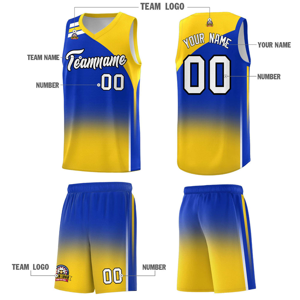 Custom Royal Gold Gradient Fashion Sets Sports Uniform Basketball Jersey