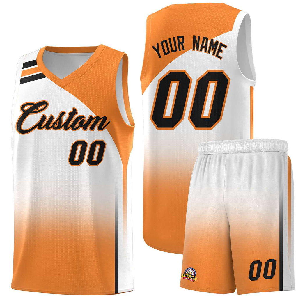 Custom White Gold Orange Gradient Fashion Sets Sports Uniform Basketball Jersey