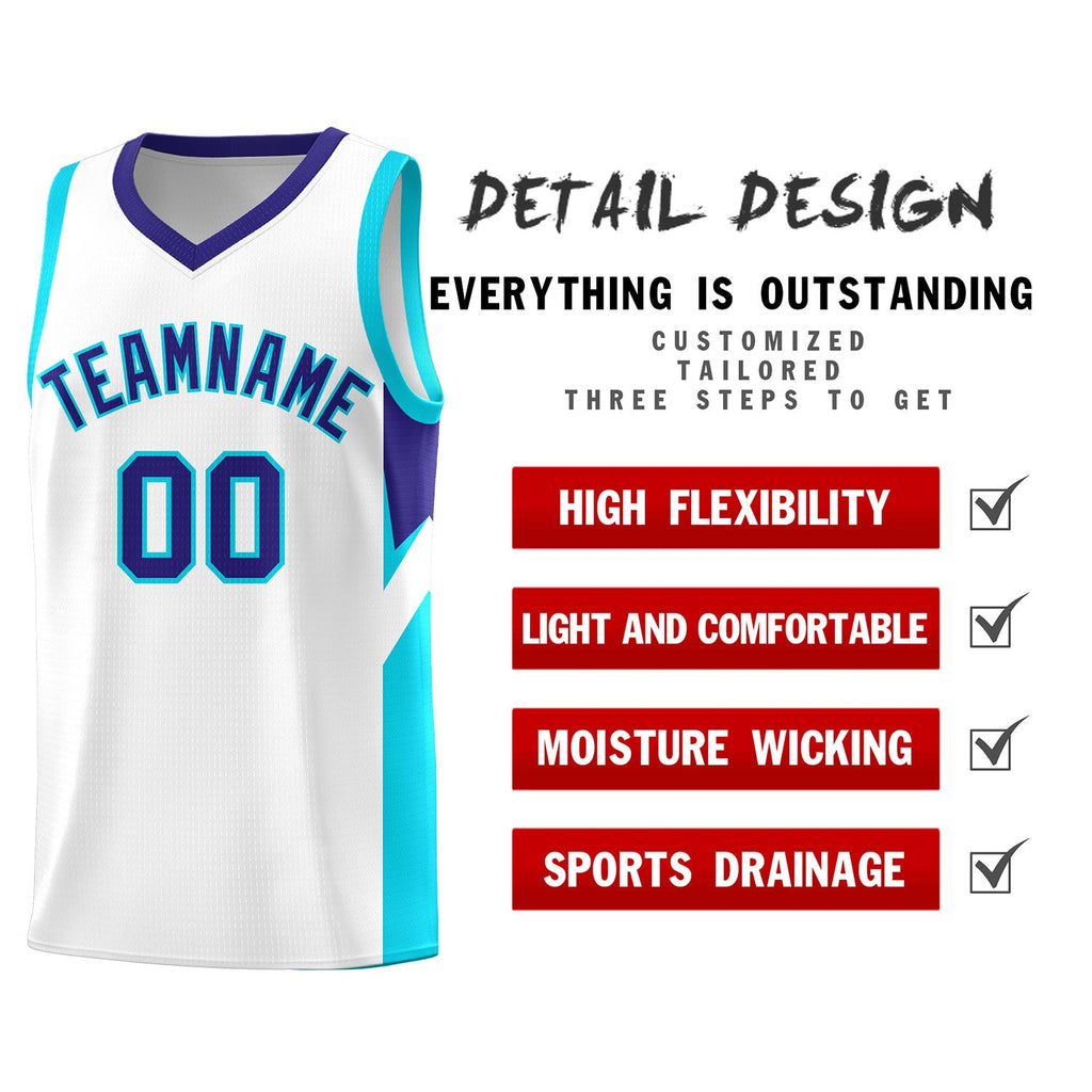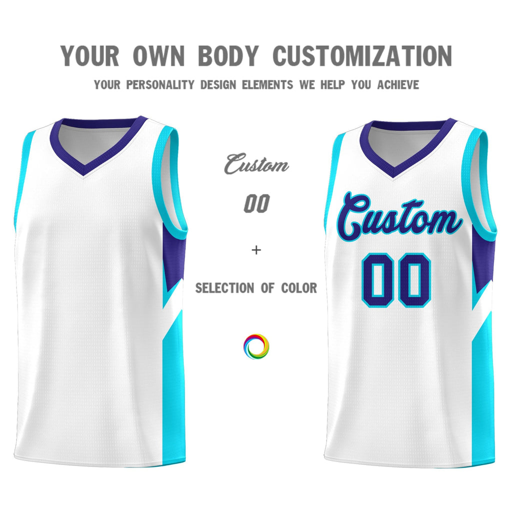 Custom White Royal Side Design Sets Sports Uniform Basketball Jersey
