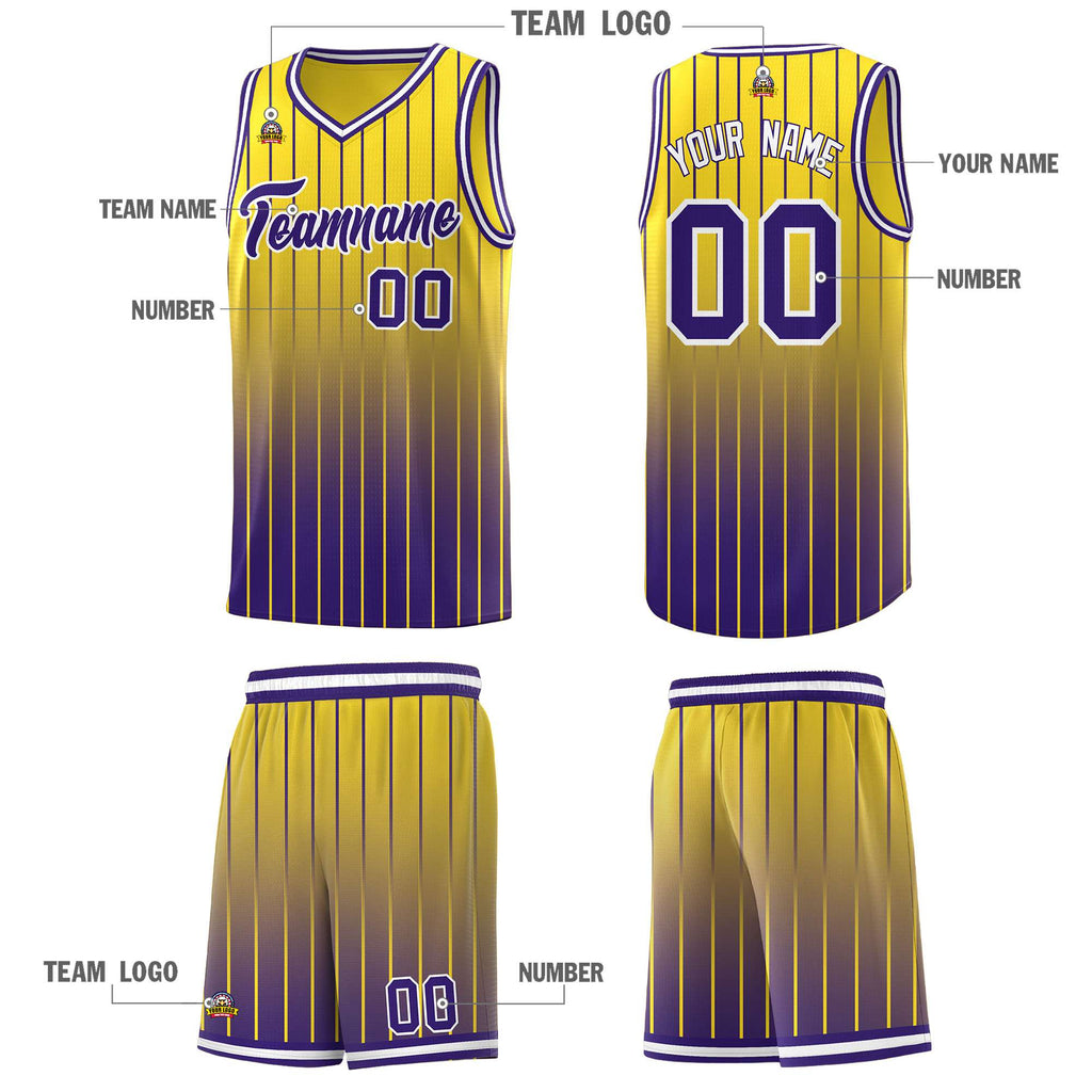 Custom Gold Purple Gradient Fashion Sets Sports Stripe Uniform Basketball Jersey