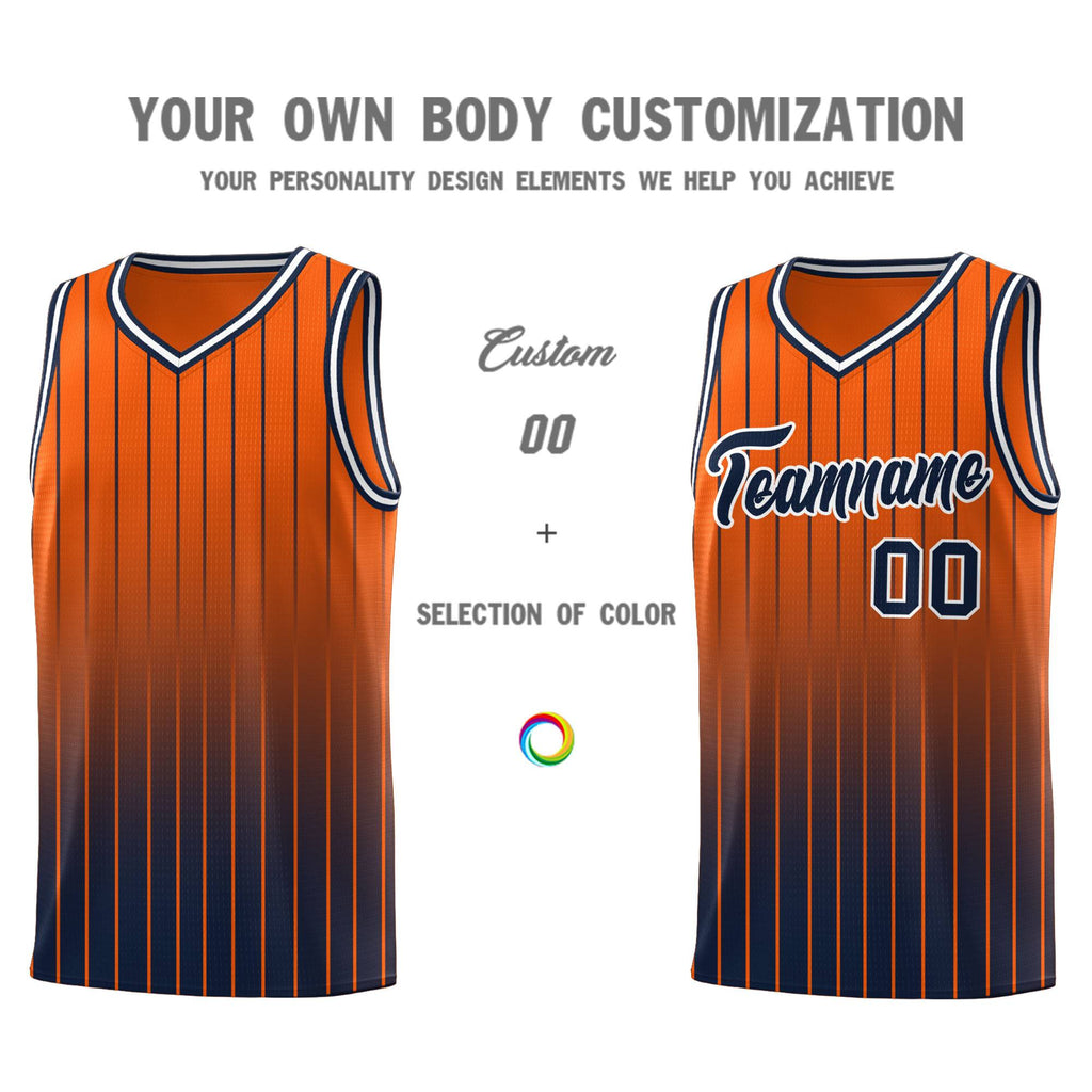 Custom Orange Navy Gradient Fashion Sets Sports Stripe Uniform Basketball Jersey