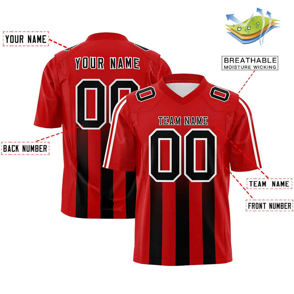 Custom Red Black Vertical Fine Stripe Gradient Fashion Personalized Team Football Jersey