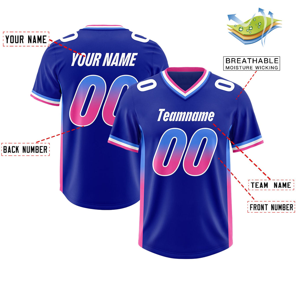 Custom Royal Powder Blue and Pink Sides Gradient Fashion Personalized Team Football Jersey