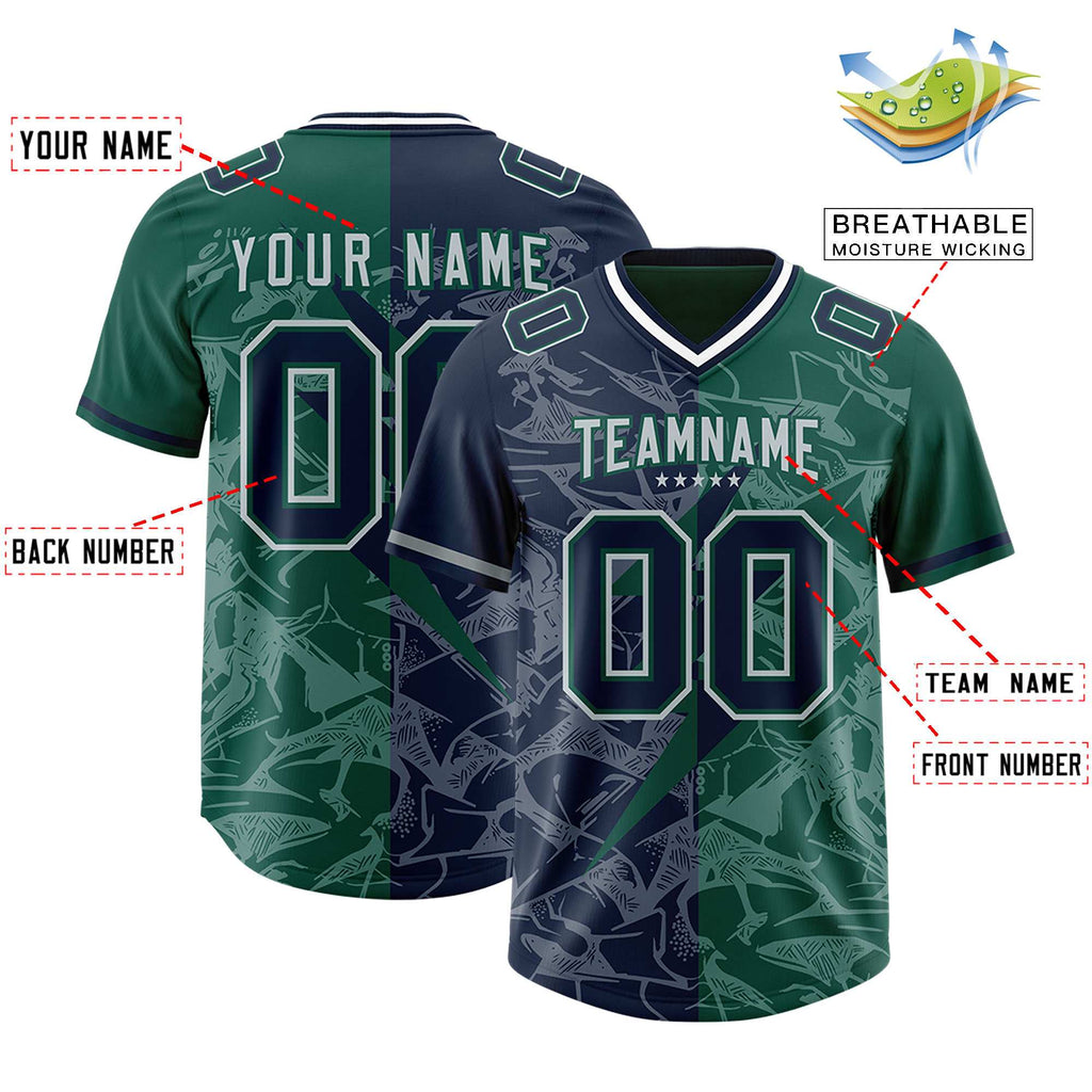 Custom Green Navy Split Personalized Lightning Pattern Football Jersey