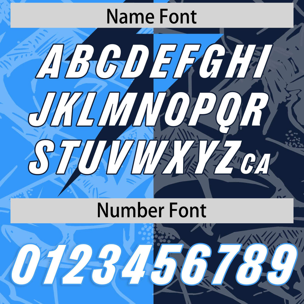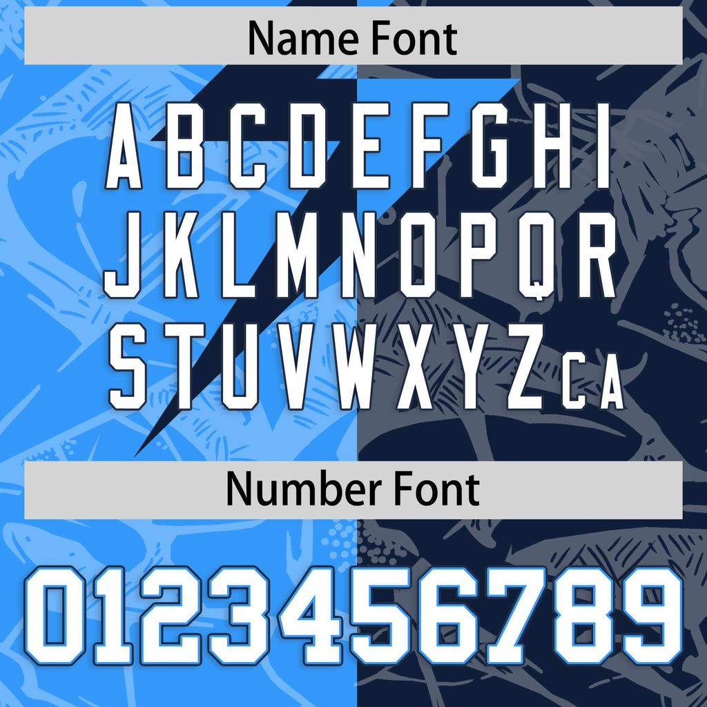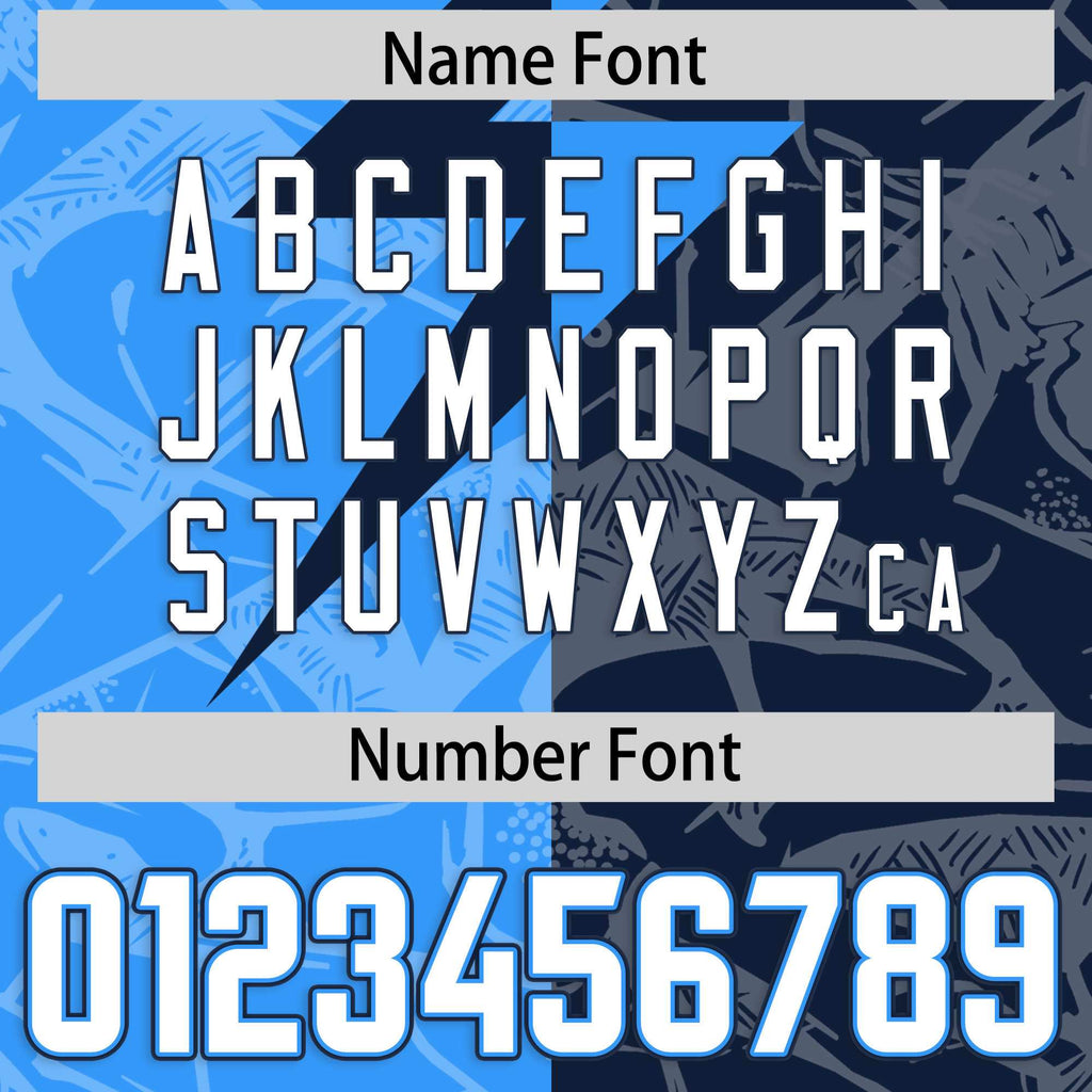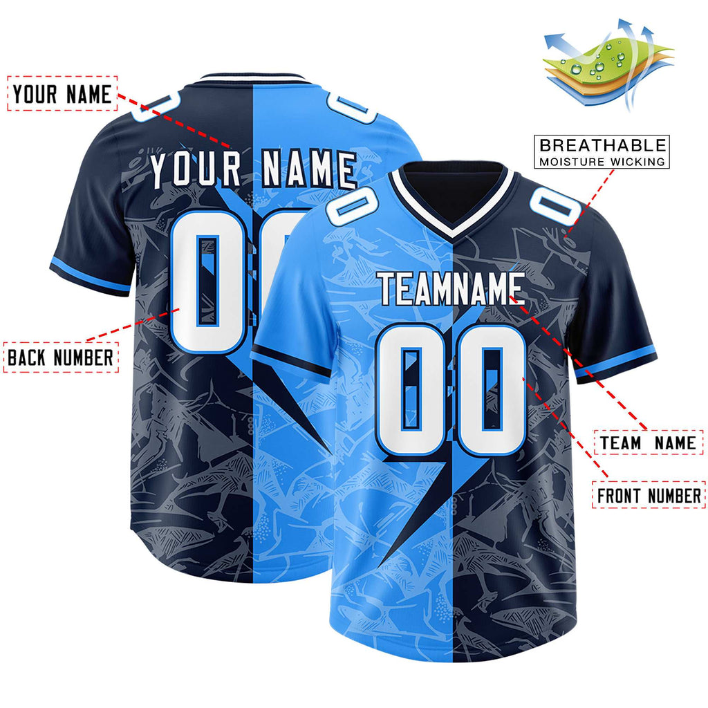 Custom Navy Light Blue Split Personalized Lightning Pattern Football Jersey
