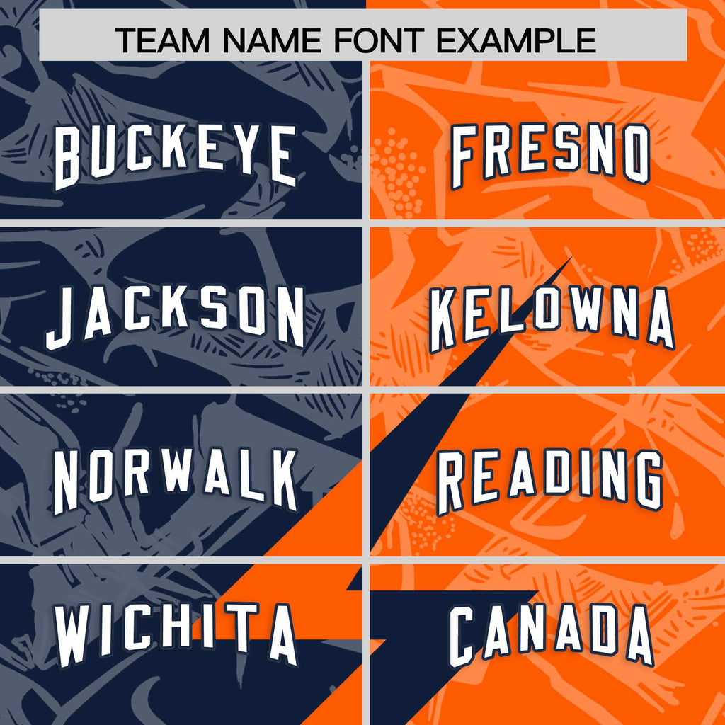 Custom Orange Navy Split Personalized Lightning Pattern Football Jersey
