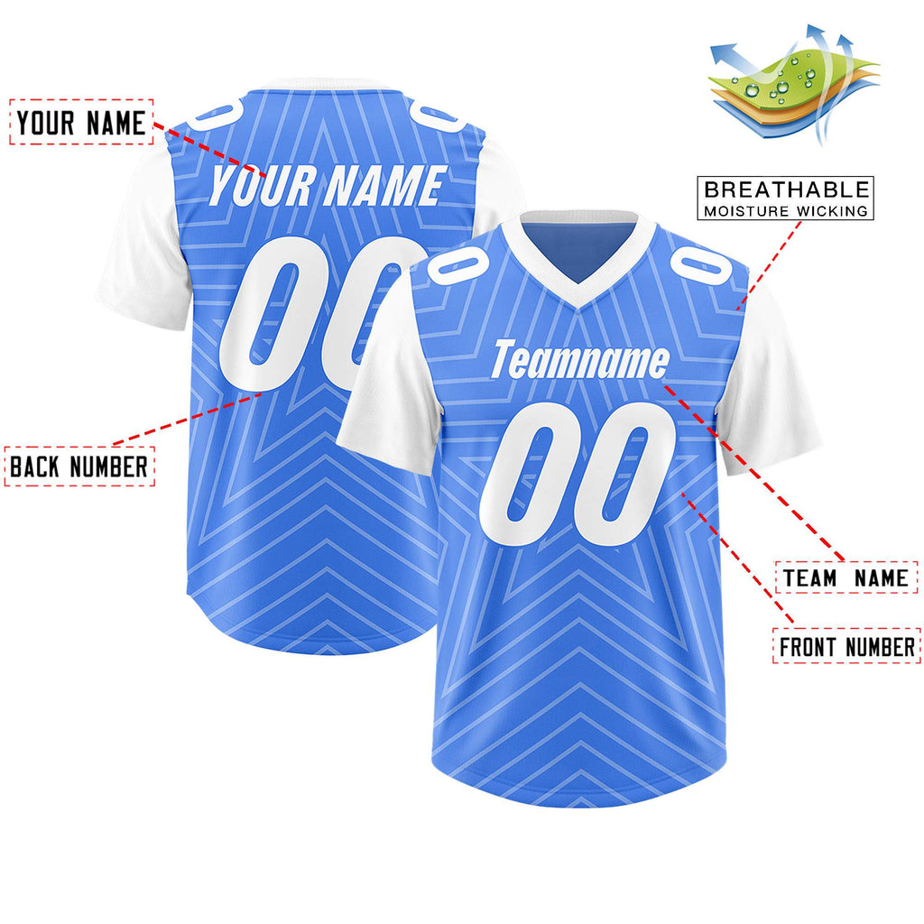 Custom Powder Blue White Personalized Star Pattern Raglan Sleeves Authentic Football Jersey