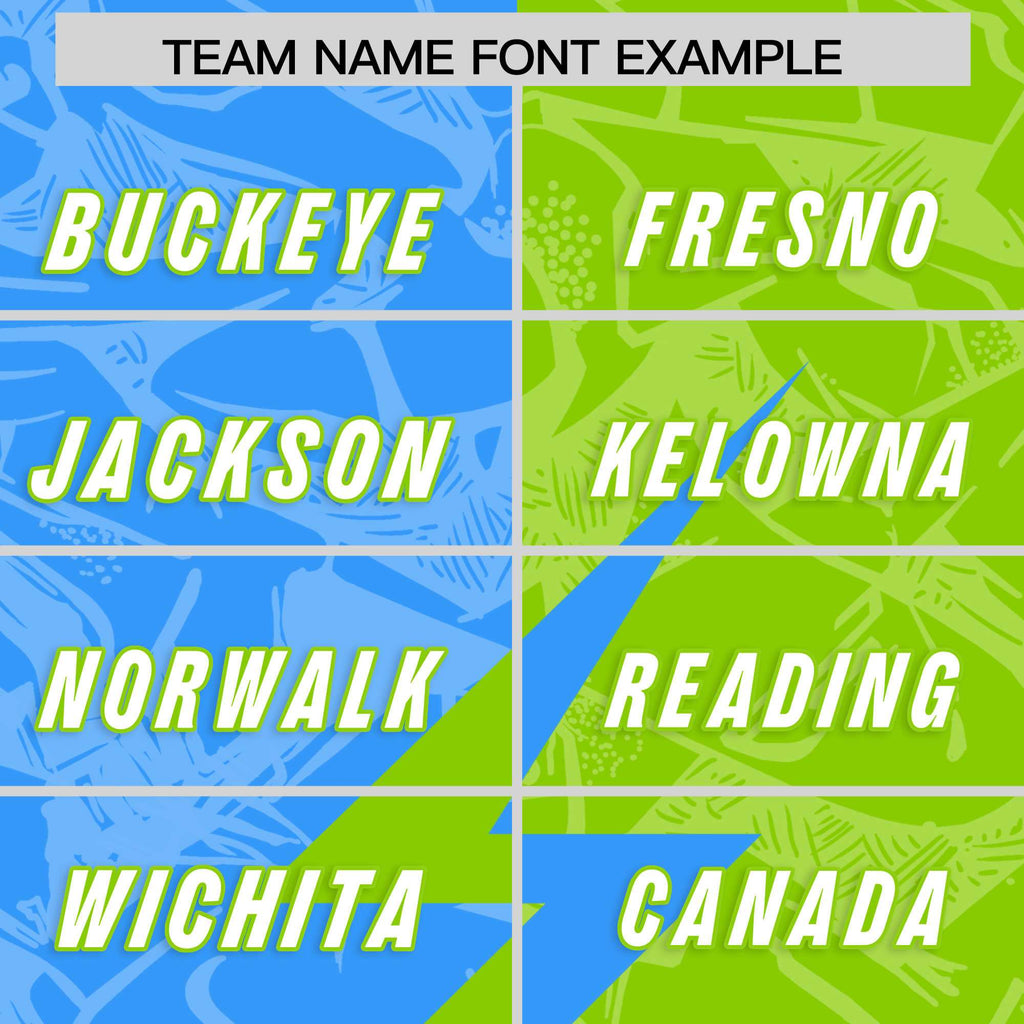 Custom Neon Green Light Blue Split Personalized Lightning Pattern Football Jersey