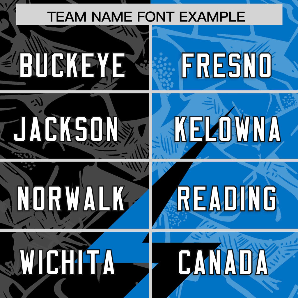 Custom Panther Blue Black Split Personalized Lightning Pattern Football Jersey