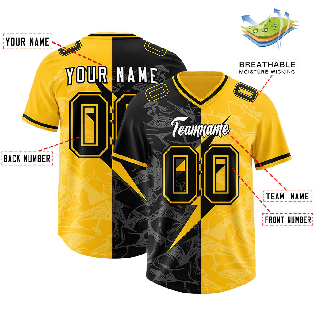 Custom Yellow Black Split Personalized Lightning Pattern Football Jersey