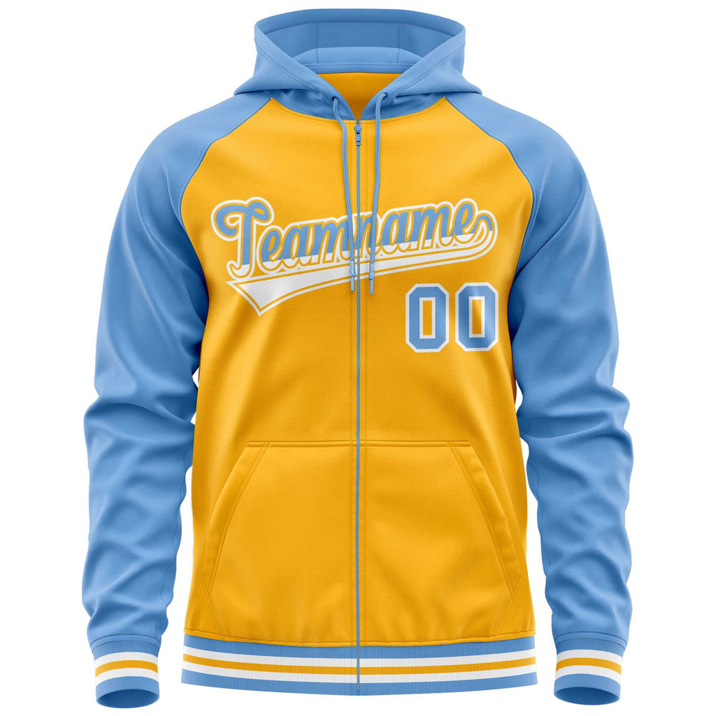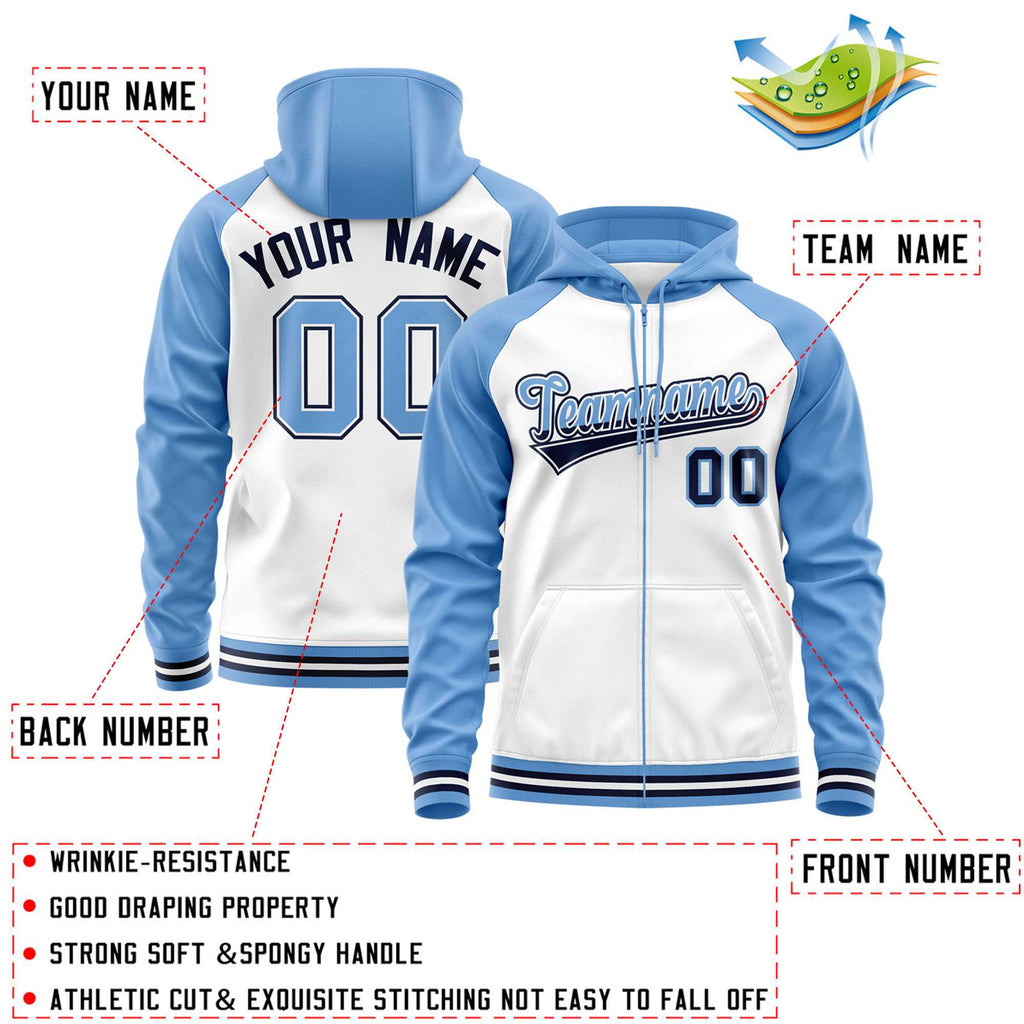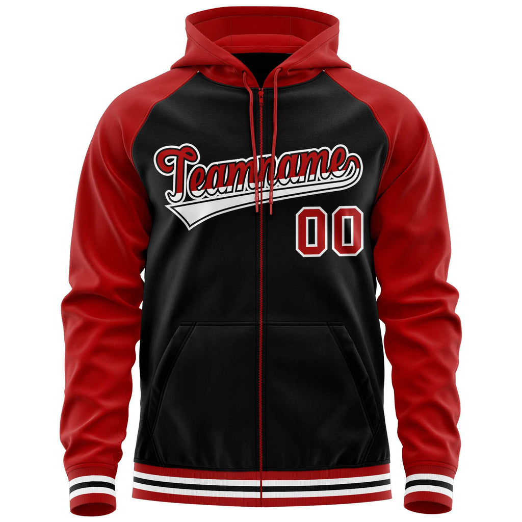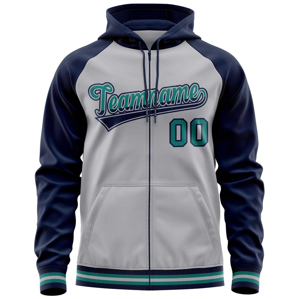 Custom Raglan Sleeves Universal Full-Zip Hoodie Embroideried Your Team Logo And Number For All Age