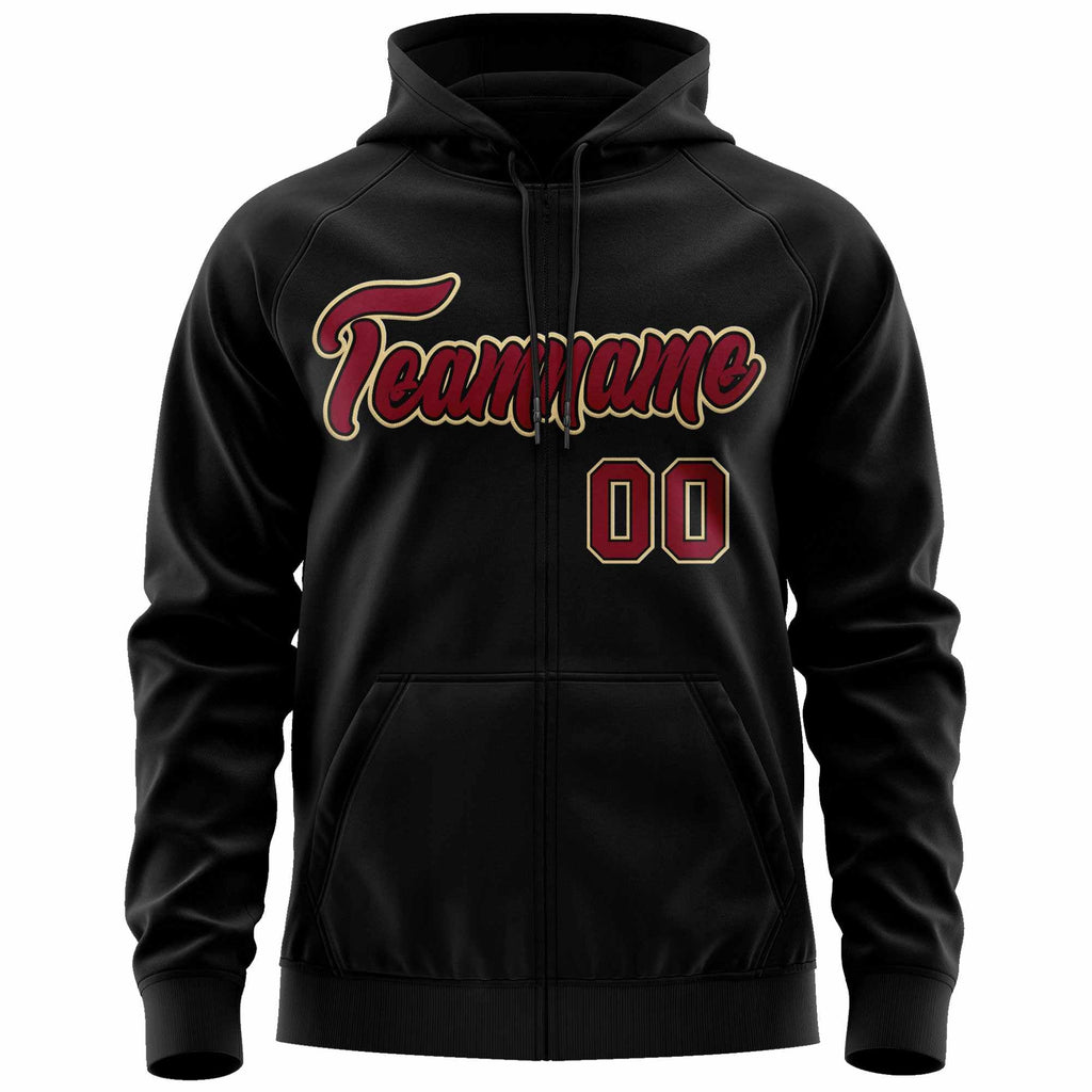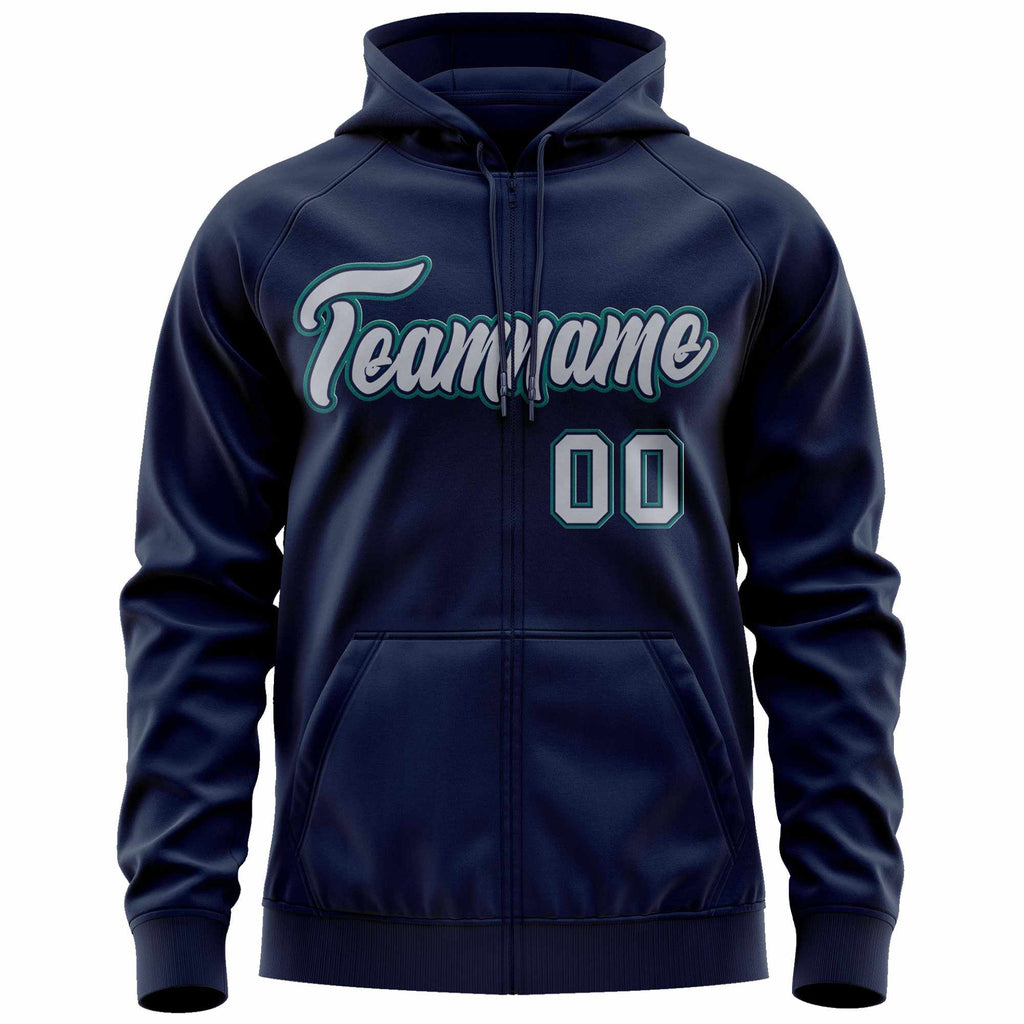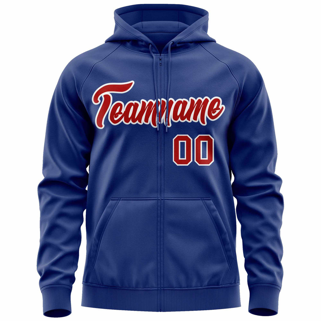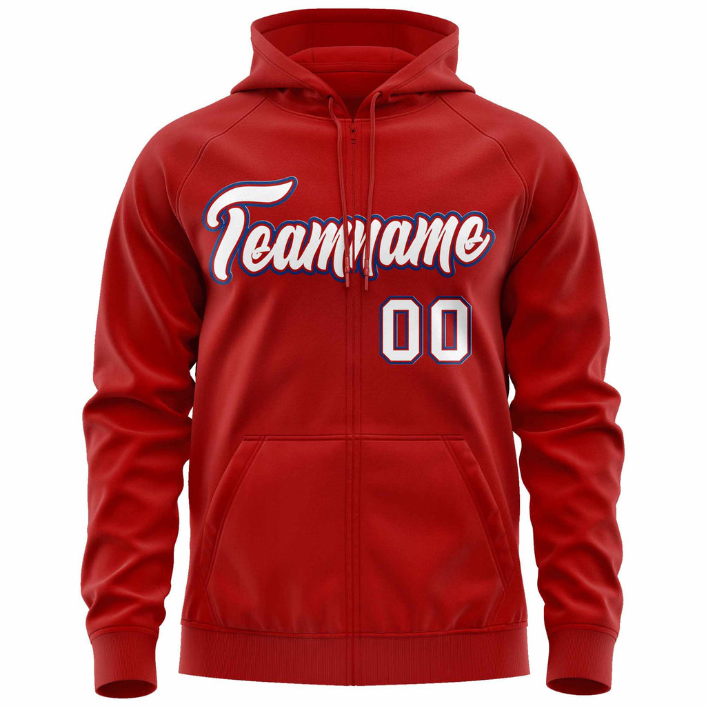 Custom Full-Zip Hoodie Sports Sweatshirt Stitched Name Number