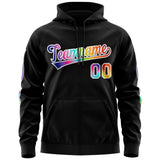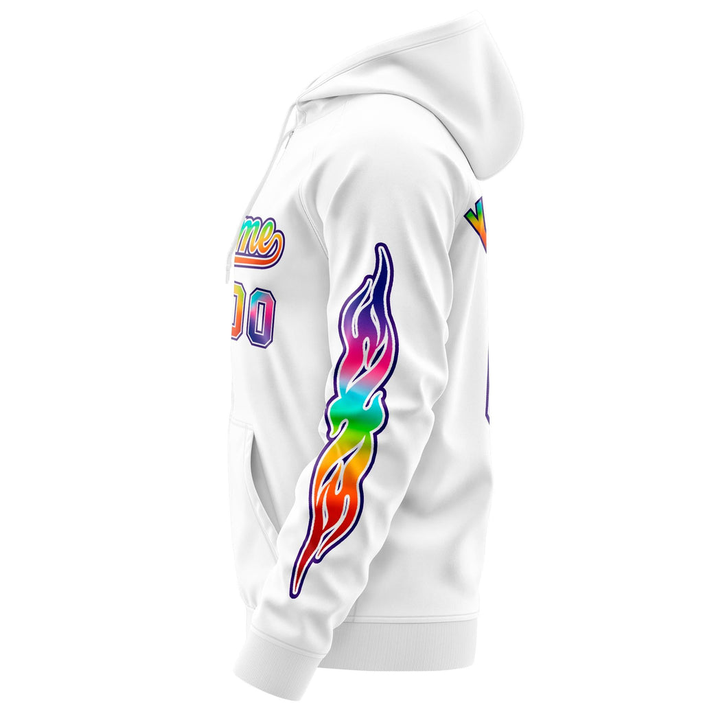 Custom Full-Zip Hoodie Stitched Text Logo Personalized Colorful Flame Sweatshirts