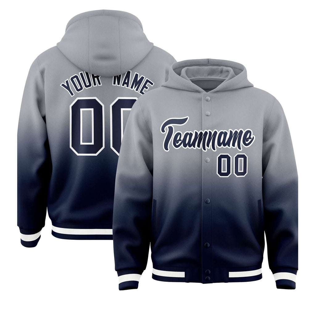 Custom Gray Navy Varsity Full-Snap Letterman Gradient Jacket Hoodie