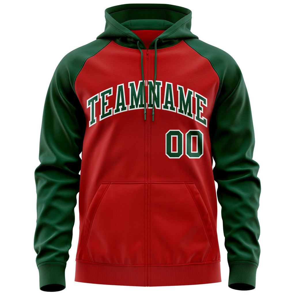 Custom Long-Sleeve Full-Zip Hoodie Raglan Sleeves For Personal Touch Stitched Team Name Number Logo