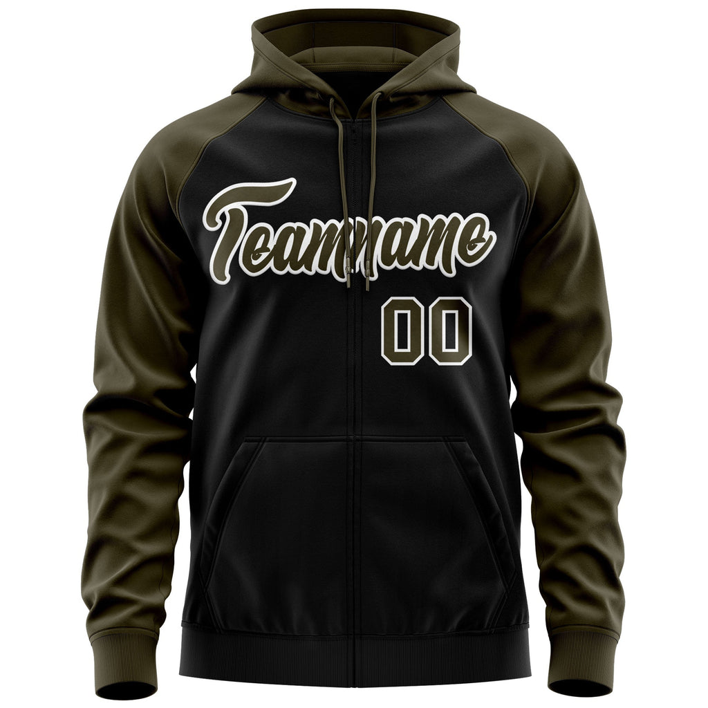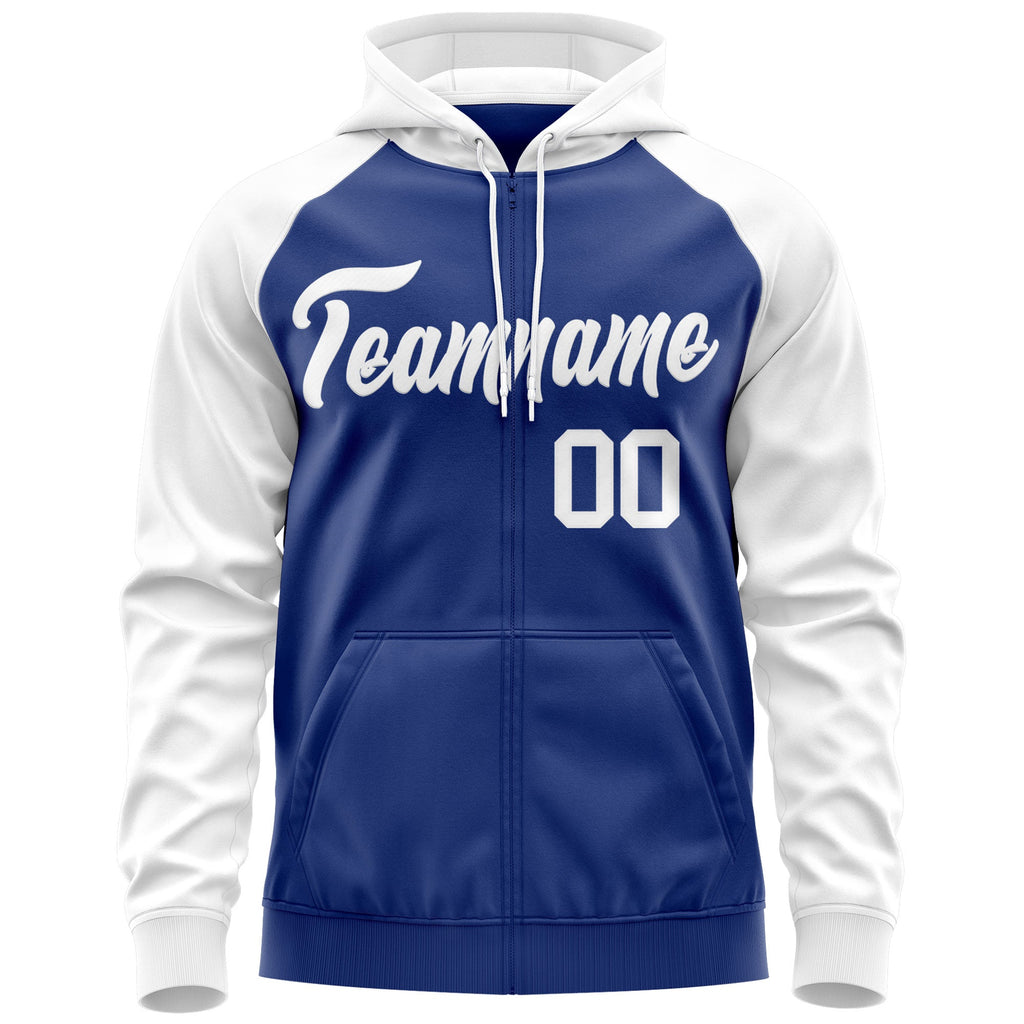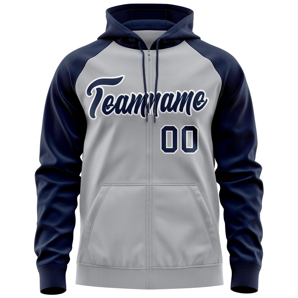 Custom Text Logo And Number Ragalan Sleeves Fashion Full-Zip Hoodie Sport Sweatshirt