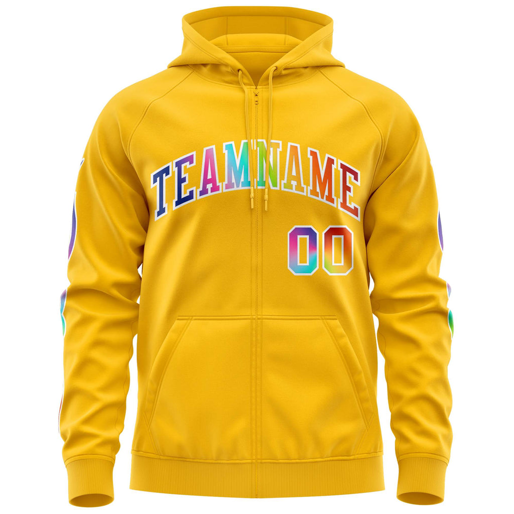 Custom Unisex Colorful Flame Sports Full-Zip Sweatshirt Hoodie Stitched Name Number