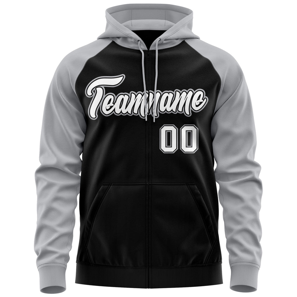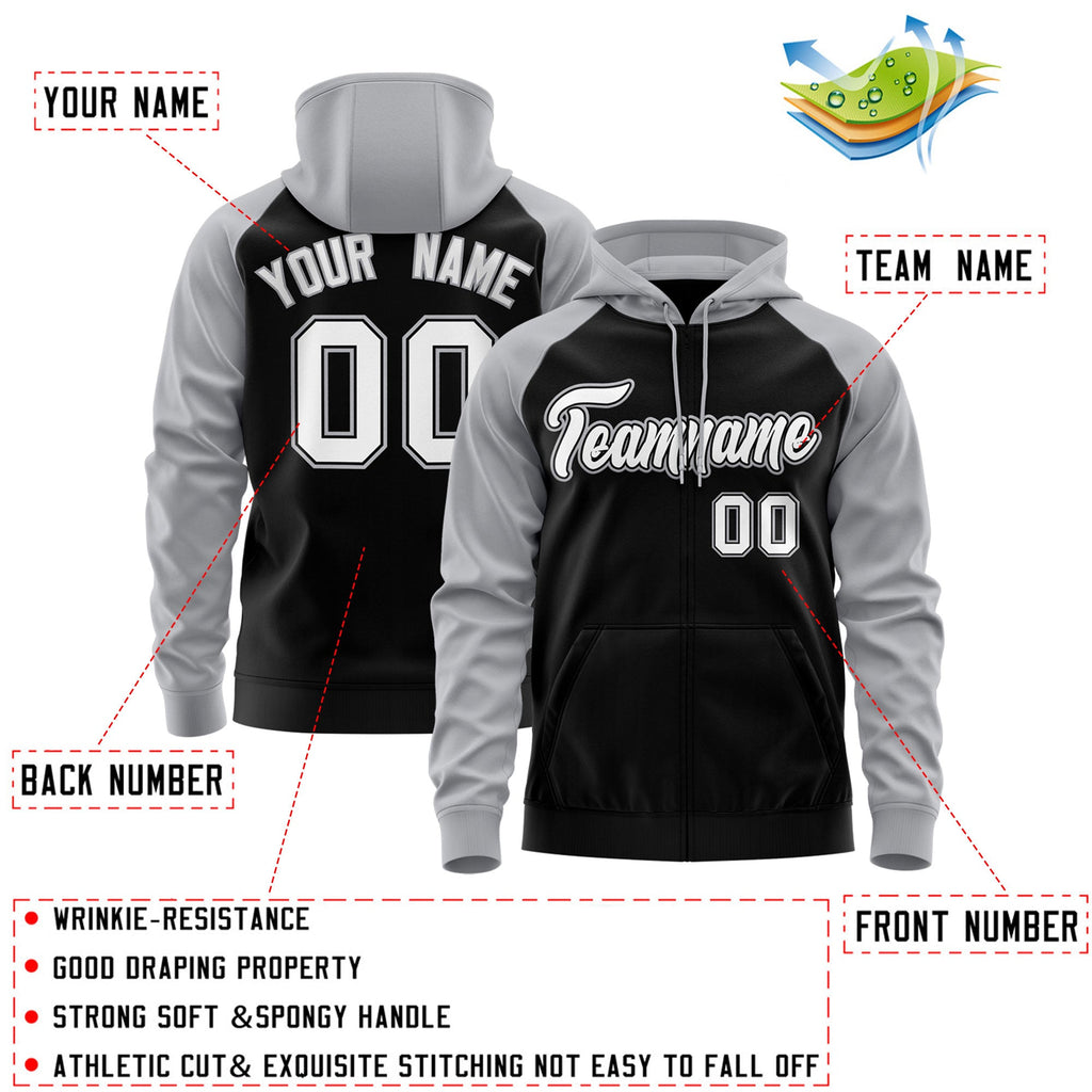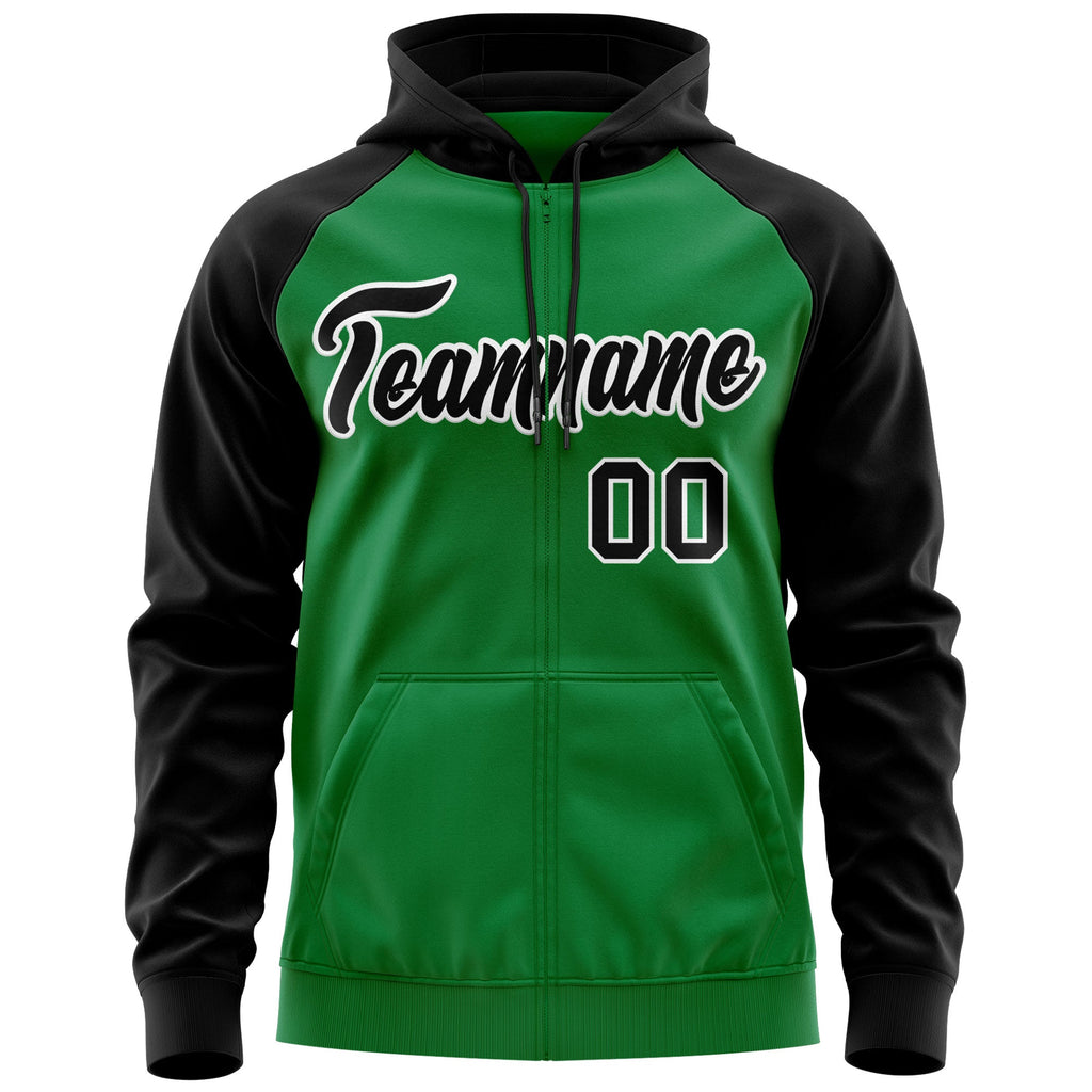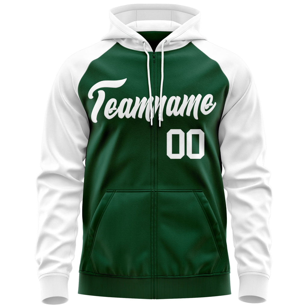 Custom Unisex Full-Zip Hoodie Raglan Sleeves Sports Hoodie Stitched Team Name Number Logo
