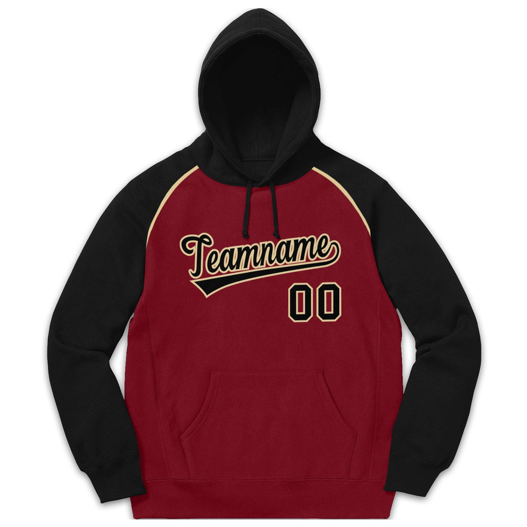 Custom Pullover Hoodie Raglan Sleeves Embroideried Sweatshirt Your Team Logo And Number Adult Youth