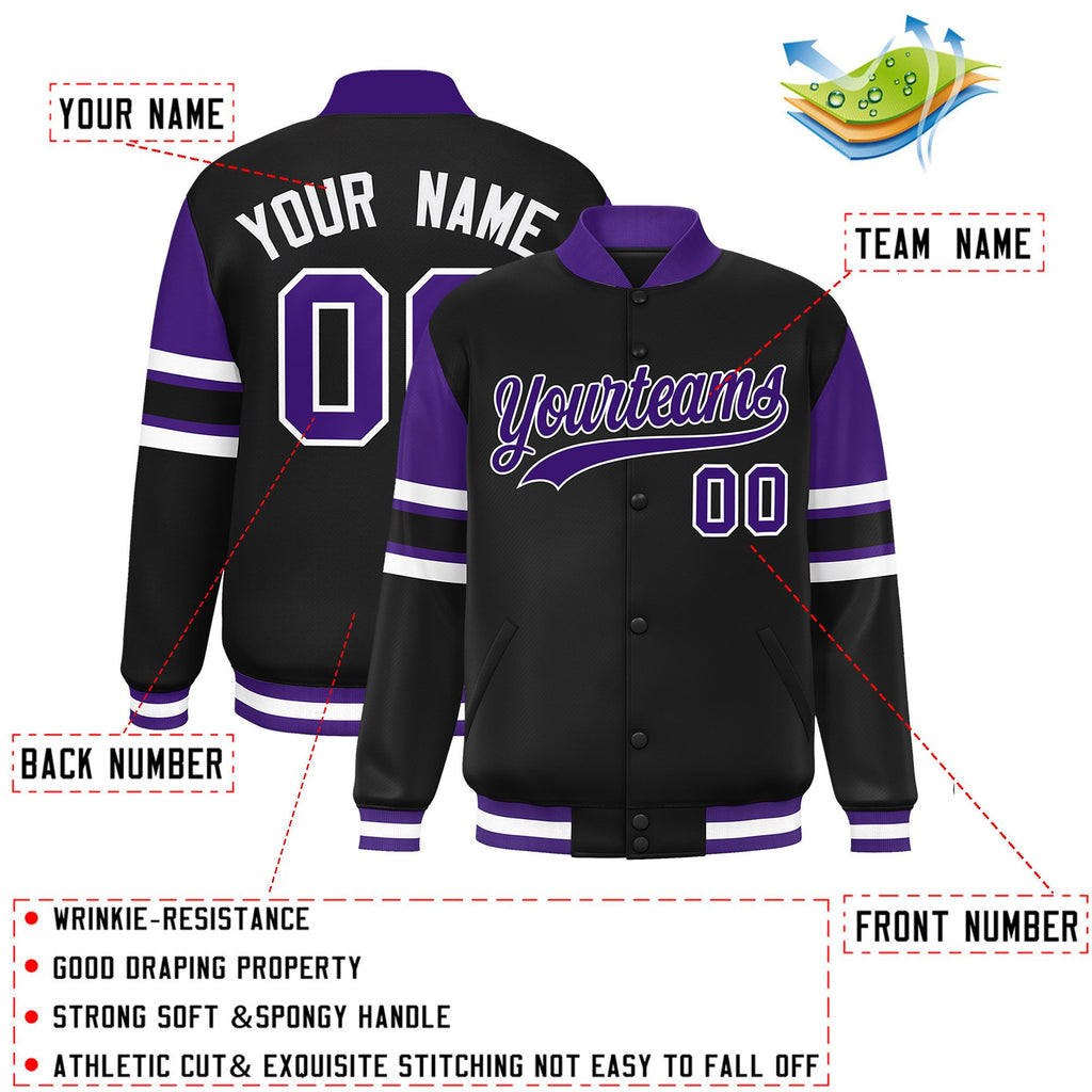Custom Black Varsity Full-Snap Color Block Letterman Jacket