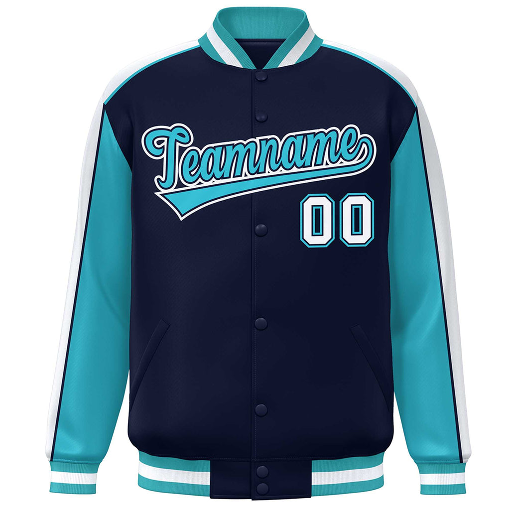 Custom Color Block Athletic College Letterman Bomber Coat Full-Snap Baseball Jacket