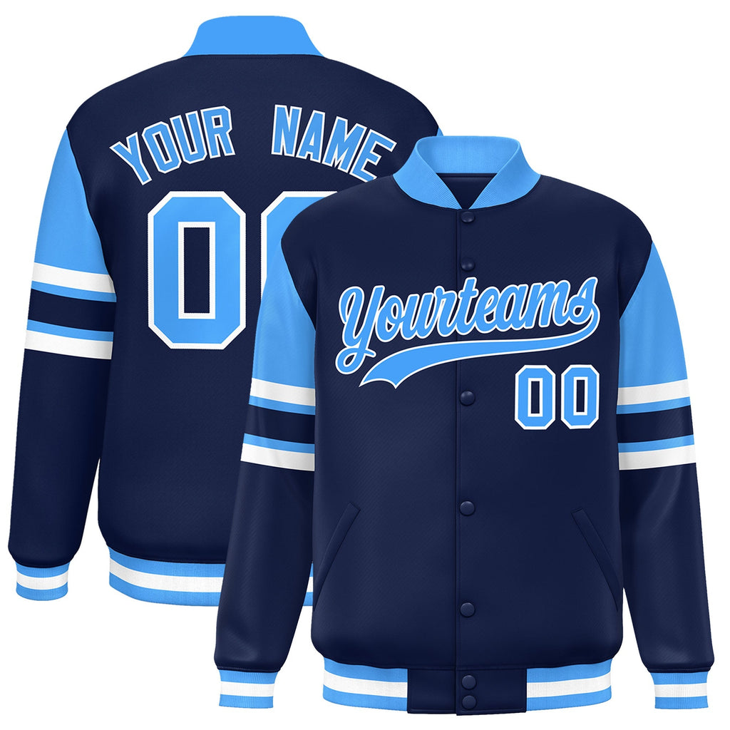 Custom Navy Varsity Full-Snap Color Block Letterman Jacket