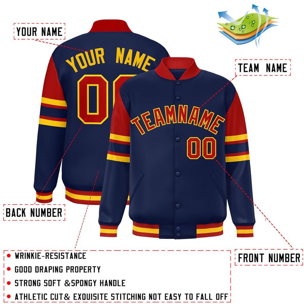 Custom Navy Varsity Full-Snap Color Block Letterman Jacket
